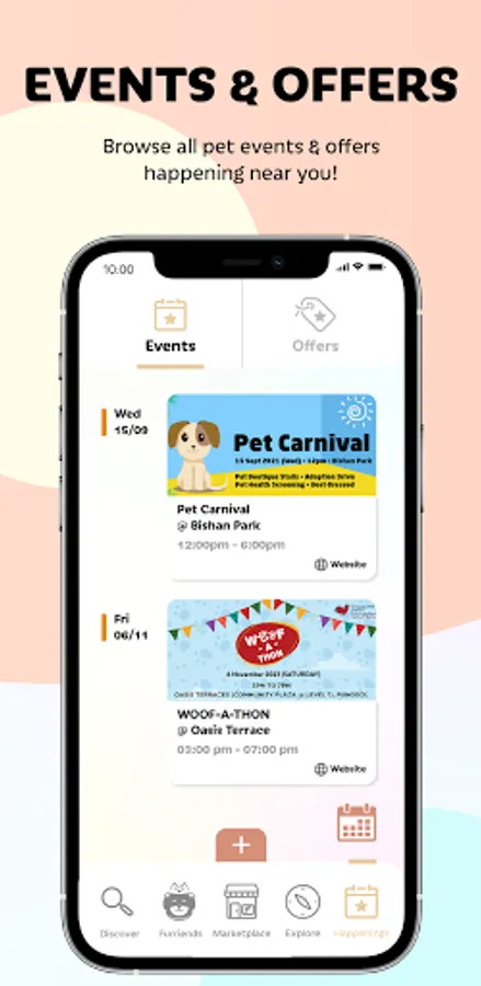 Consolidates all pet events and offers.