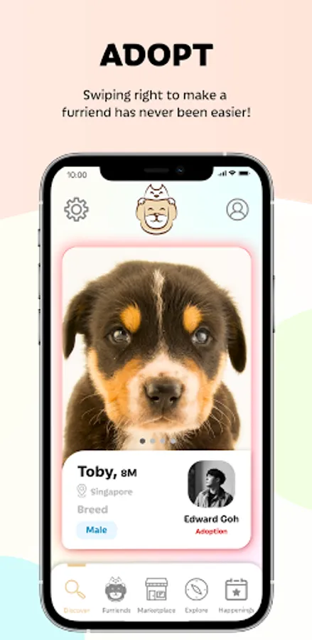 Adoption feature to allow adoption companies to help any pet ready to find their forever home. Dedicated red glow to easily identify pets up for adoption and distinguish them from other pet listings.