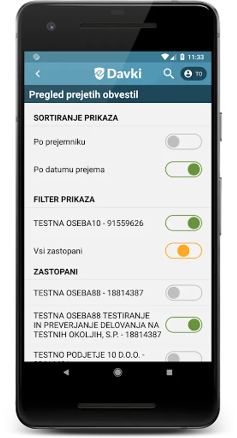 The application also allows for work performed on behalf of other taxable persons. Thus, legal representatives of business entities and authorised representatives may submit and receive documents, and review data on behalf of the persons they represent. The application offers legal representatives and authorised persons to receive push notifications and notifications for the represented taxable persons and to filter the receipt of such notifications. A calendar is also available in the application, where general (grey), taxable persons' (red) and represented taxable persons' events (green) are recorded. At the same time, filtering the display of events on the calendar is also provided.
