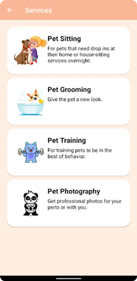 Through this app, pet owners can find pet sitters who can take care of their furry pets while they are away without any difficulties and is not time-consuming. This application offers services such as pet sitting, pet photography, pet grooming, and pet training, and can be used to locate the nearest veterinary clinic during any emergency. This application also displays available pet sitters and pet owners' requests. For pet owners, pet sitters, groomers, and other services, there are two types of accounts to log into. Pet owners can also be pet sitters for other pet owners, and pet sitters can have their dogs who require pet watching or other services.