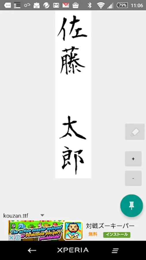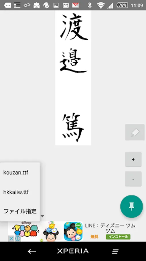 Please enter the characters First, I want to write. If you confirm it will be displayed role model down (tap the return key when you do not see). The size of the role model will be changed pinch, pinch out (shrink or spread or two fingers). Plus button, you can also fine-tune in the minus button.