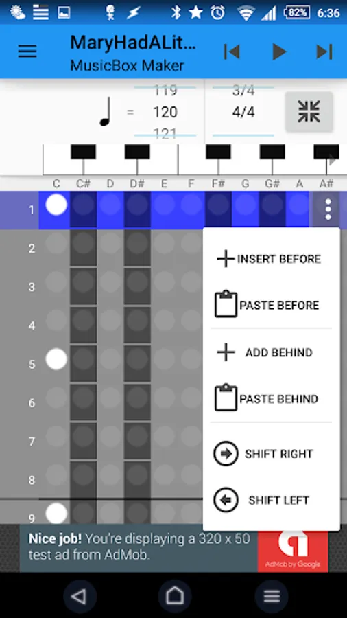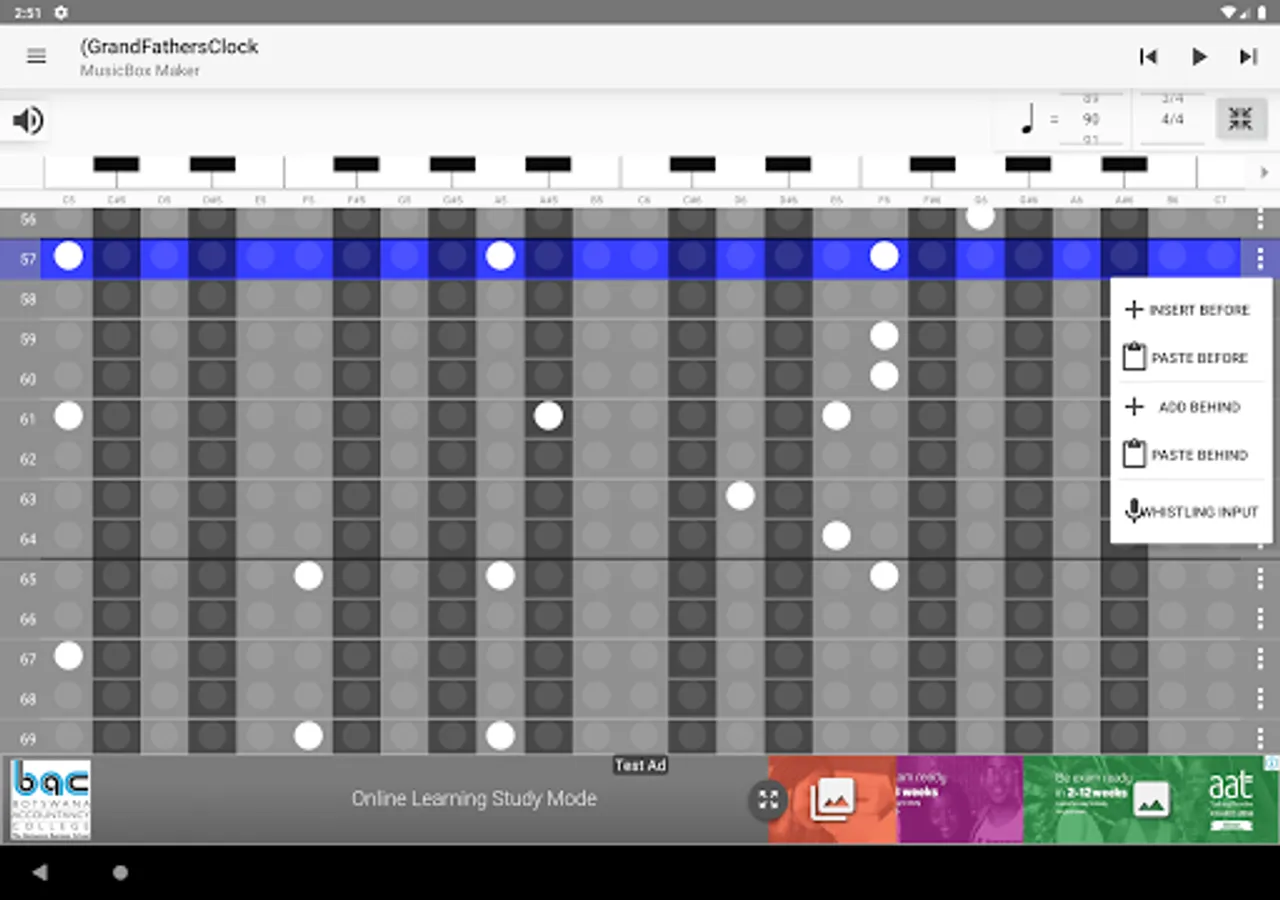 Tap the last highlight color part of the song to add an empty line for one bar.