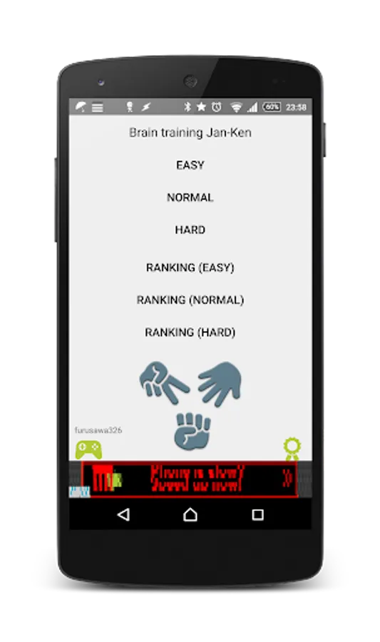 The game starts when you select the mode on the menu screen. As the voice of "Jan-ken-pon" comes out and the opponent's hand is displayed with "pon", please choose your hand from the three buttons below.