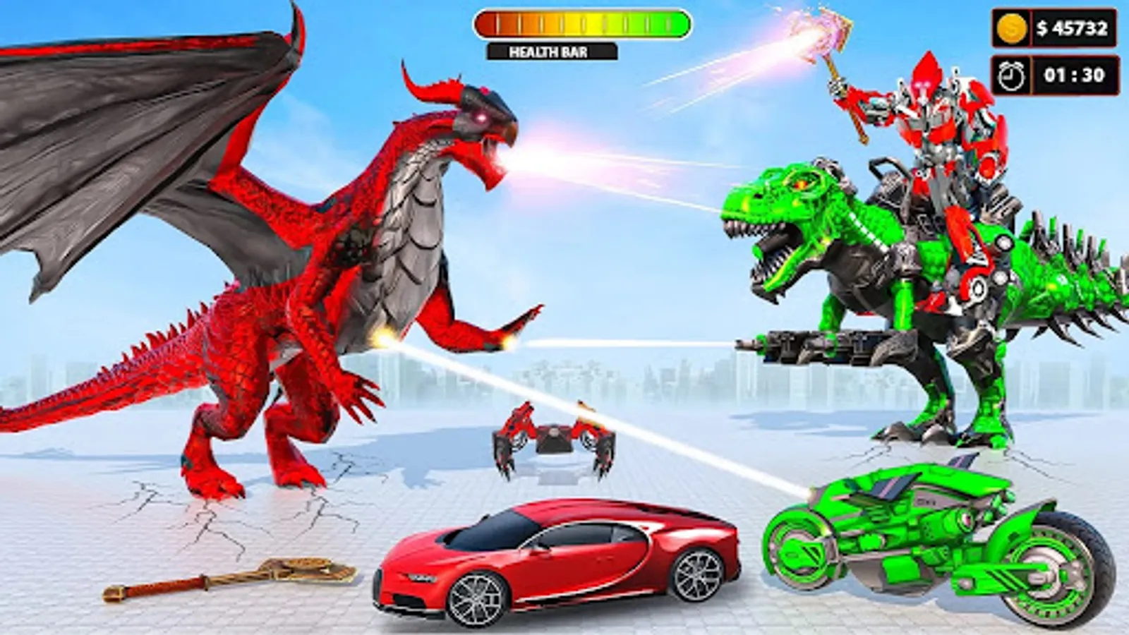 Police Dragon Robot Car Game is an endless robot battle of the furious dragon robot car with multi robot transformations. Play tank robot games and helicopter games to enjoy dragon robot police car battles with other evil dragon robots in shooting games. In dragon robot games you will enjoy modern bike robot games, spider robot game and super robot transform in dragon, tank, robot, drone, helicopter, dinosaur and many more in robot shooting games and spider robot game. Flying robot car transformation war game gives you the best experience of robot shooting games and robot fighting games. Play robot war shooting game to improve your skills in dragon robot transform games. Being the part of police robot wars, save the world from dino robot attacks in dragon robot game and prove yourself as lone savior of dragon robot transform games and car games.