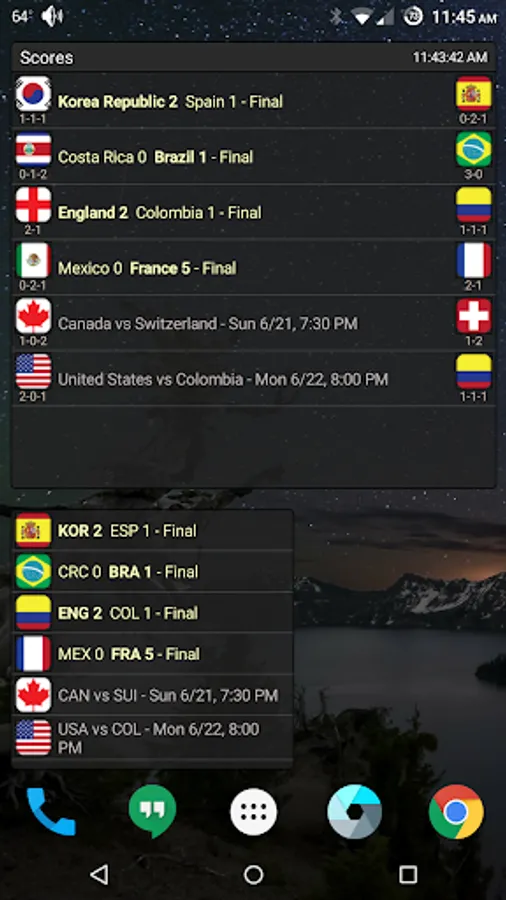 Scores Widget was designed to be a non-intrusive way to get real-time score updates for your favorite teams. Just turn on your phone and the latest scores will be waiting on your home screen, no clicks or additional steps needed. You can even have the widget speak score updates to you so you don’t need to constantly check your phone.