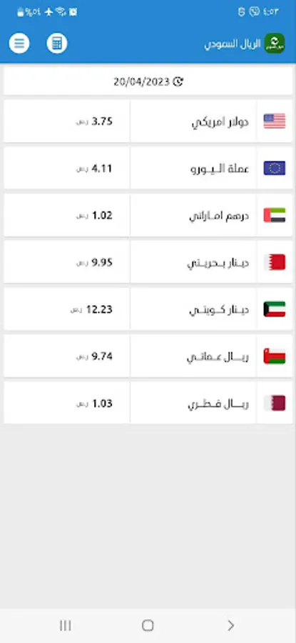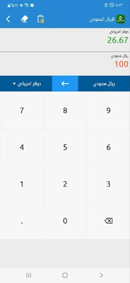 The Saudi Riyal Calculator application is considered one of the best currency conversion applications for Android phones, as the application provides the most important currency exchange rates in addition to the possibility of calculating the currency through the currency calculator integrated in the application easily, and you can choose the currency to be converted to through the drop-down list and then choose the currency referred to as Currency and country flag, as well as to change between converting to and from by clicking on the arrow icon in the middle.