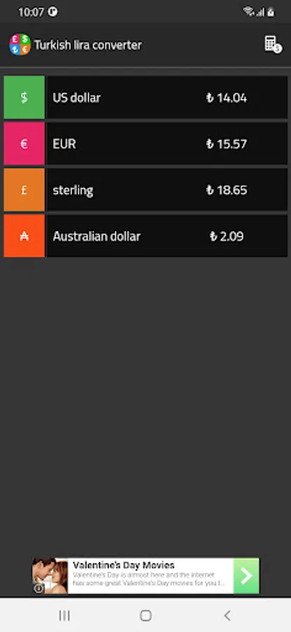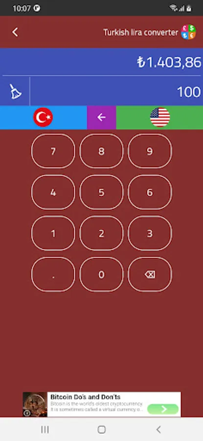 The "Turkish Lira Converter" application allows you to know the exchange rate of the dollar, the euro, against the Turkish lira and vice versa with the latest update with the possibility of calculating your money through the calculator built into the application and the ability to update the exchange rate automatically from the server