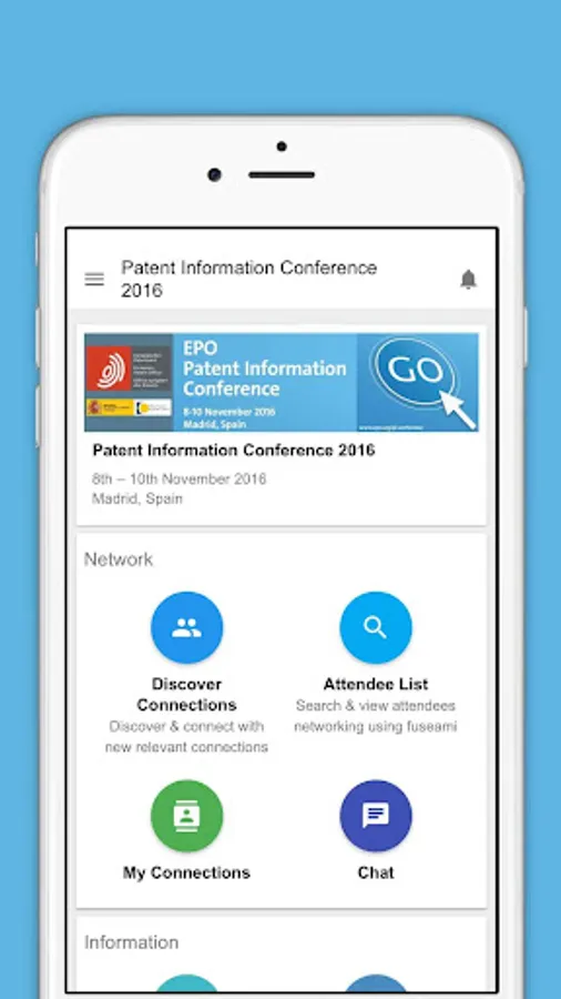 The EPO Patent Information Conference app is powered by “fuseami – the smarter networking and conference app”.