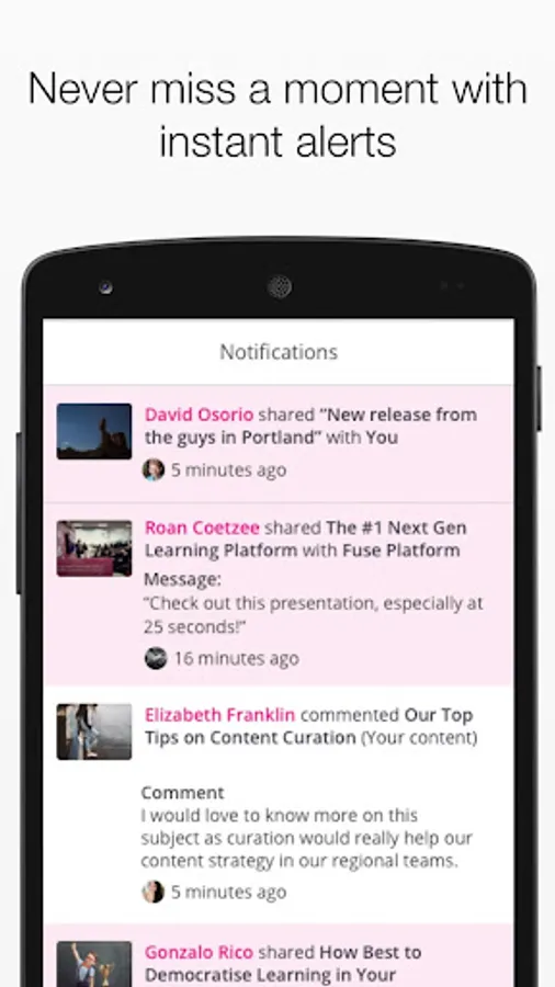 Share links, create articles, conduct coaching conversations and ask questions on the move. Gain instant access to all content through our enhanced search functionality directly in the app.