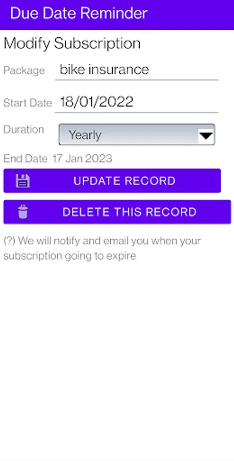 This is a simple app to save, edit, delete and manage your subscriptions like OTT, insurance, credit or debit cards, vehicle service date, licence etc. This app will give you alert/notification when your subscription is going due so that you never lose your subscription