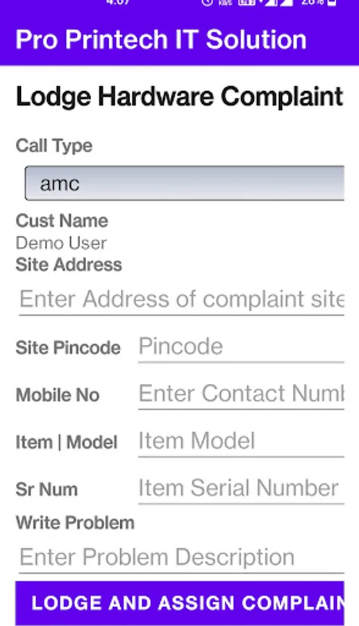 This is a simple app by which you can lodge complaint for your computer hardware like pc, screen, printer, mouse, keyboard, scanner etc. You can also track status of your complaint. App by Pro Printech IT Solution