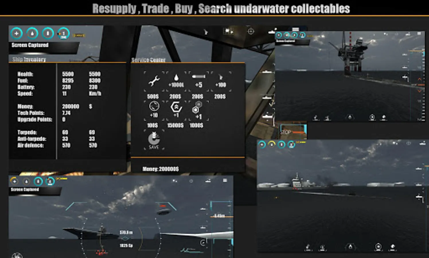 - Modern submarine features like EMP weapons, technology items, teleportation , torpedo hacking tools, damage boosters, air resupply, tomahawk missiles .
