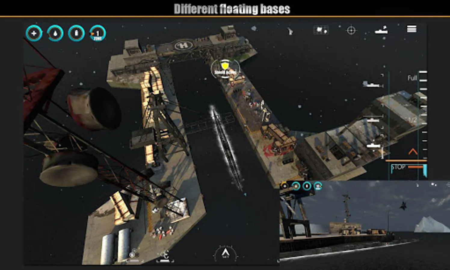We are the the submarine pirates a small independent group in the Antarctic area. Our goal is reduce the military activity around our base and our oil-rigs . We have to protect our floating bases and oil resources to be able to survive. Everybody in the this area is a potential enemy and everybody want to get our resources. We have to clear up our area every day. The floating ice mountains changes everything on each day. Sometimes we have really hard time to accomplish our missions. Fortunately we have many secret technology in our hand like teleportation , doomsday device , hacking tools and shield technology to be able to fight against many enemy.