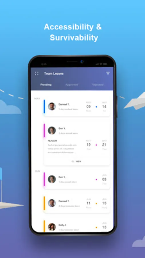The mobile App's key feature is the automated chatbot that you are able to interact with to acquire inter-organisational information you would need, together with the functionality to assist and guide you in applying leaves. No more filling forms or web logins to take an off or sick day, everything is done through your very own smartphone.