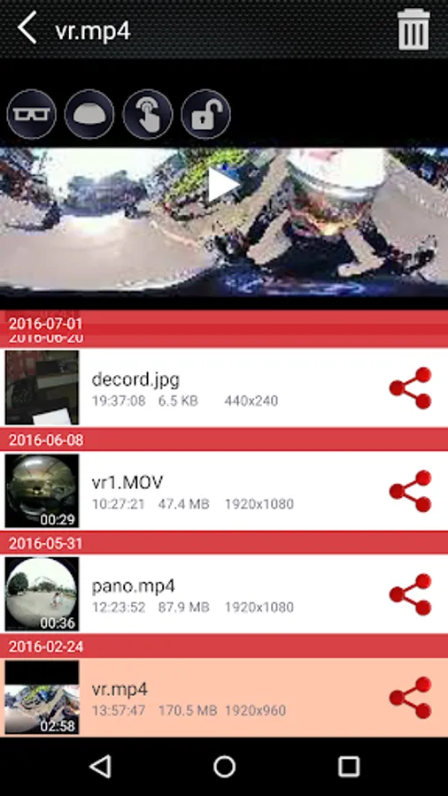- Support VR (virtual reality) playback using finger gesture or mobile phone gyro sensor (needs to be recorded by "360VR" mode)