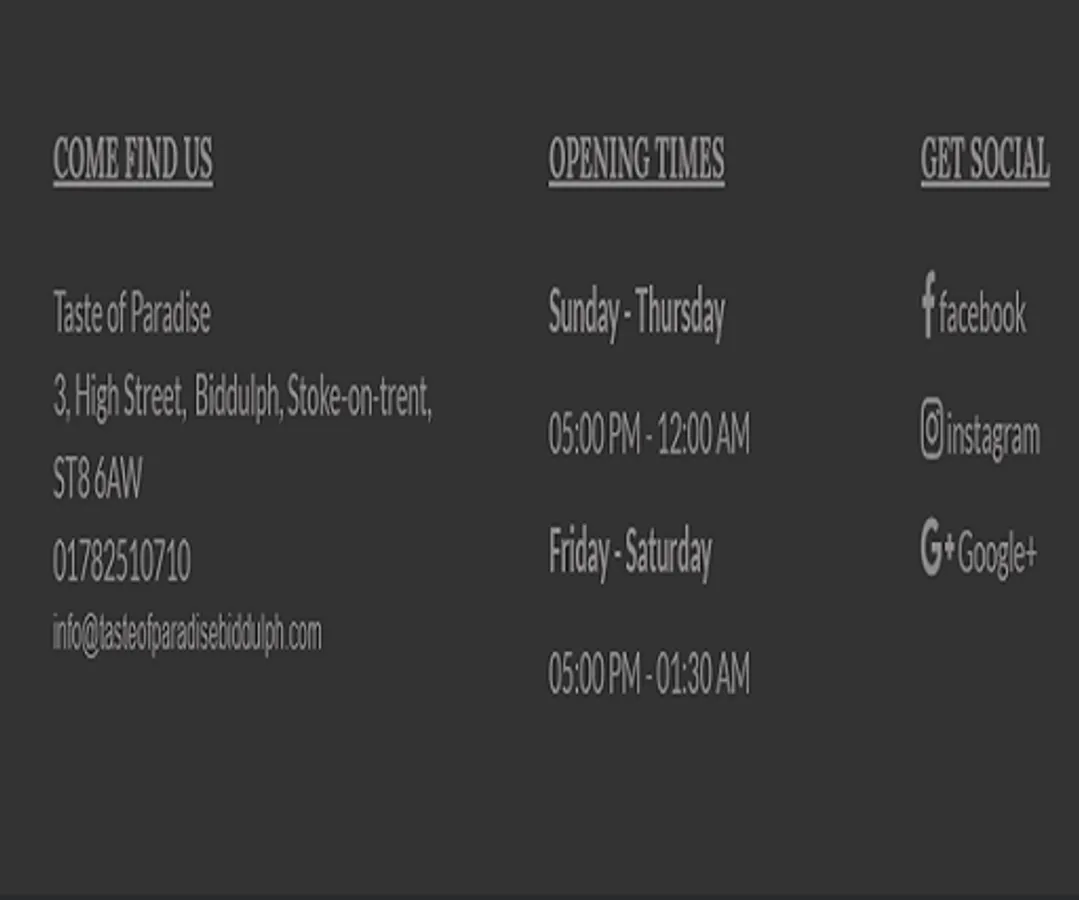 It’s so easy to use, fast and convenient. Try our new, online website which contains our entire takeaway menu. Taste of paradise is located in 3 high street, Biddulph,Stroke-on-trent, ST8 6AW. You can now order online, all your favourite dishes and many more delicious options, and have them delivered straight to your door in no time at all. Here at Taste of paradise Bilddulph, we are constantly striving to improve our service and quality in online takeaway ordering to give our customers the very best experience.