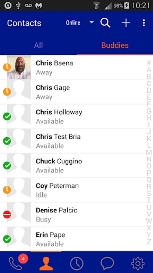 • View a colleague’s presence status and communicate via secure instant messaging