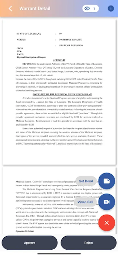 Approve and Reject buttons clearly marked above each warrant.