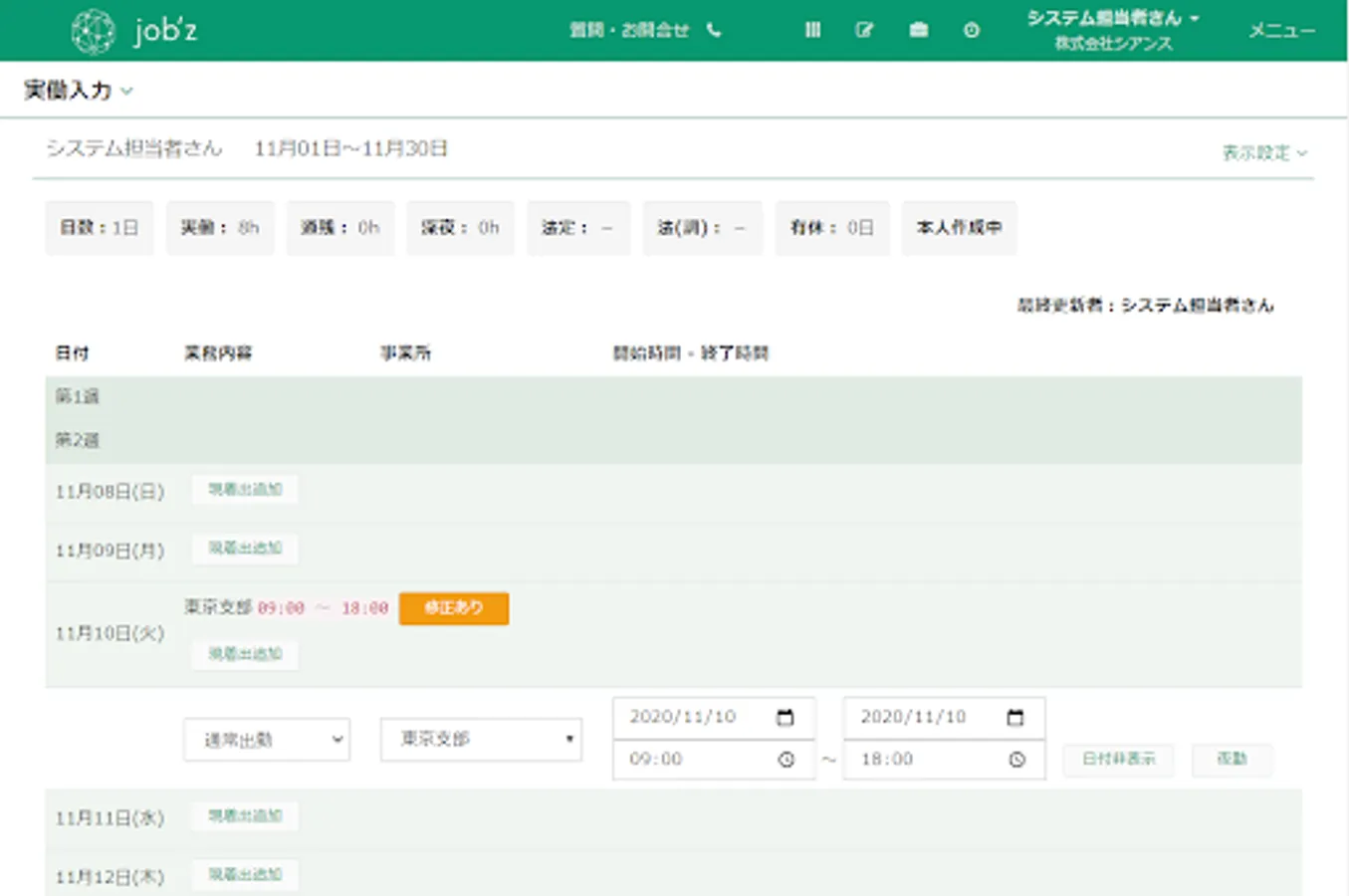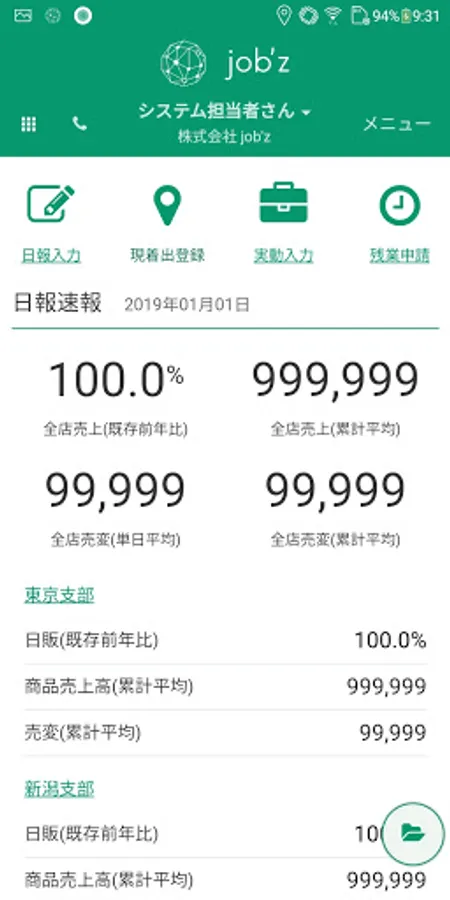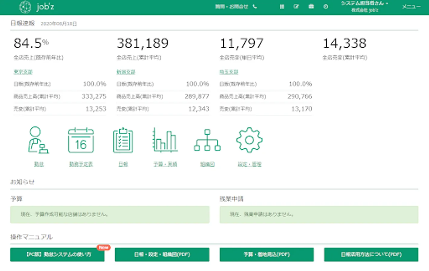 Operation is completed speedily from a smartphone or tablet with just a few operations. It is a simple cloud business management system for everything from managers to employees and part-time workers.