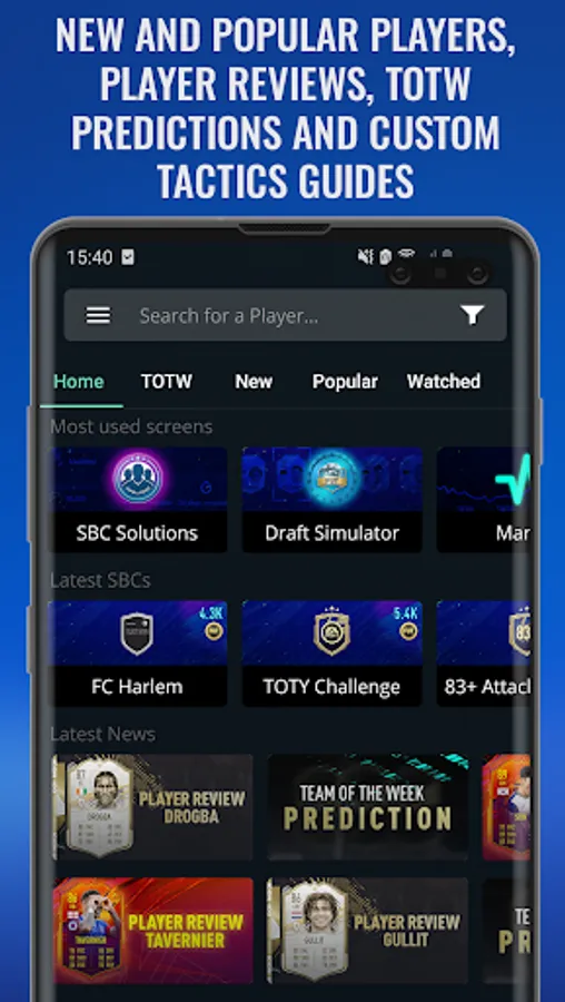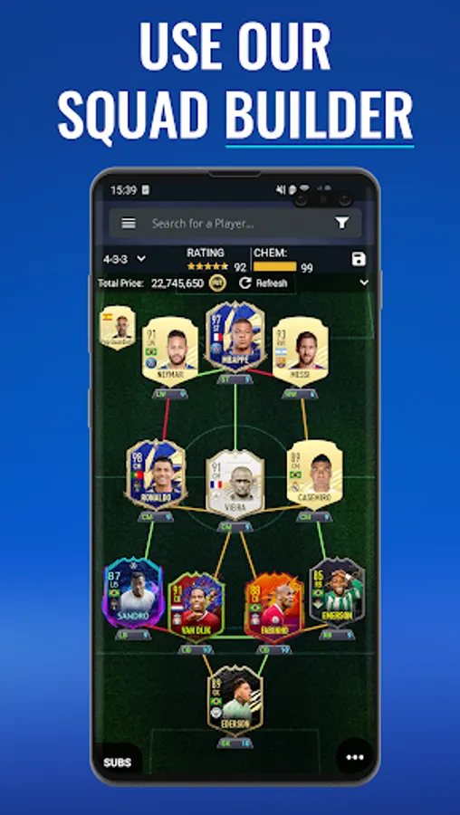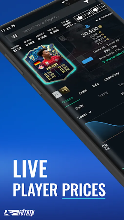 With the FUTBIN app you can explore the news, database, information, football notifications, build squads, play draft simulator, get current player prices including historical graph, consumables prices and player stats!