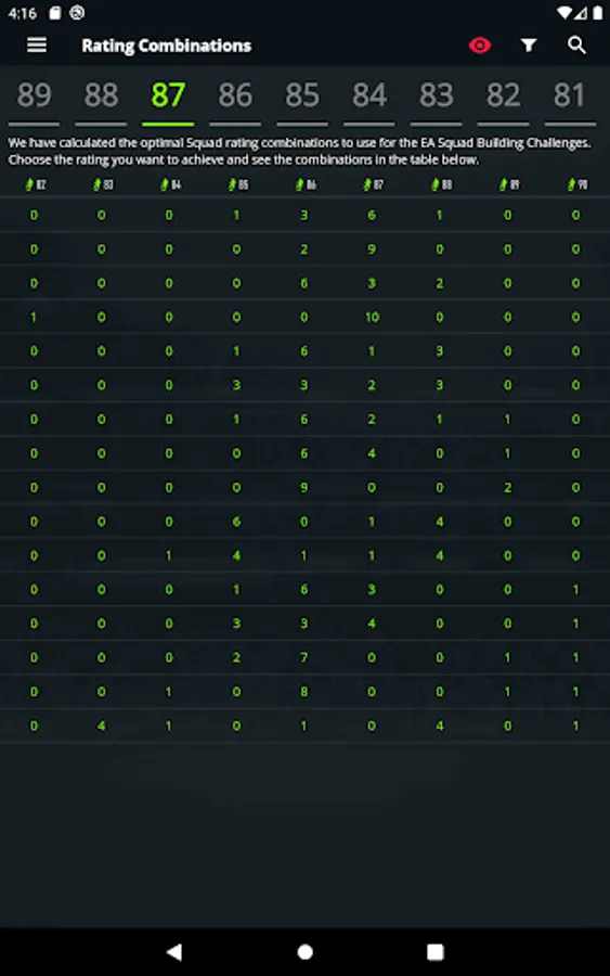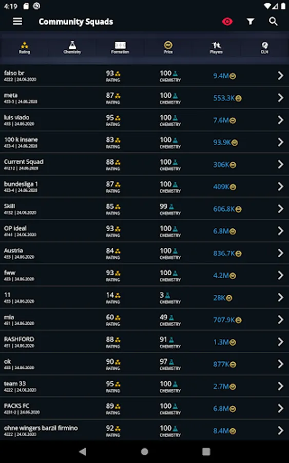 - Squad Builder including player suggestions based upon chemistry and links.