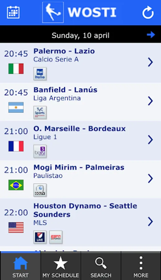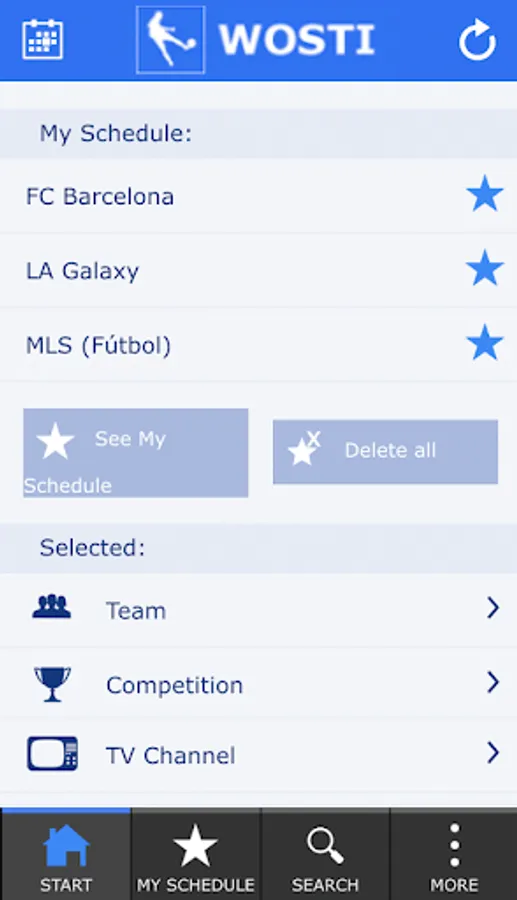 - My Schedule. You can customize your schedule to your liking, not to have to filter it each time you check the Application. Mark your favorite teams, competitions and favorite channels, and the App will show only what interests you, every time you enter .