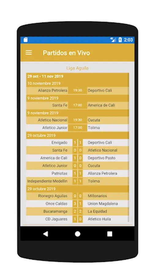 - Live scores: follow live matches through online scores and enjoy being updated with everything that happens in Colombian football. Service similar to that offered by other applications such as Roja Directa
