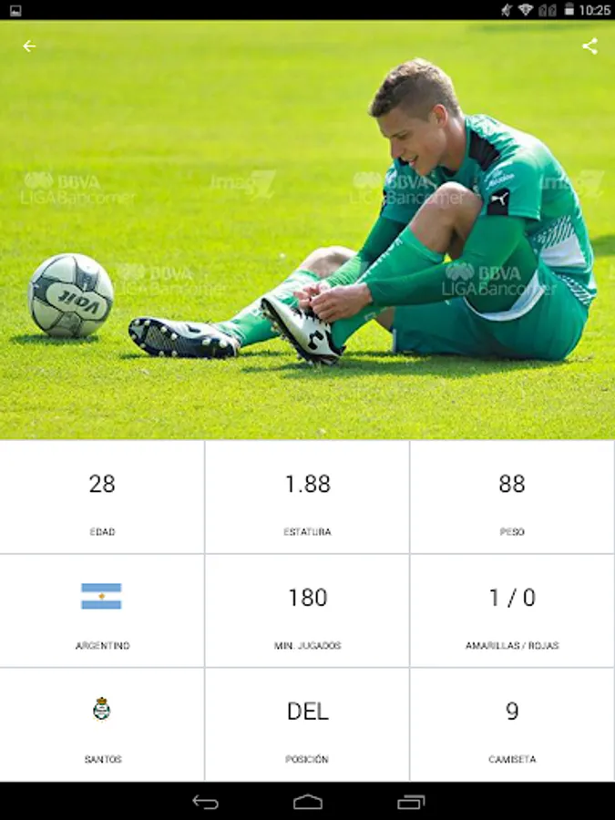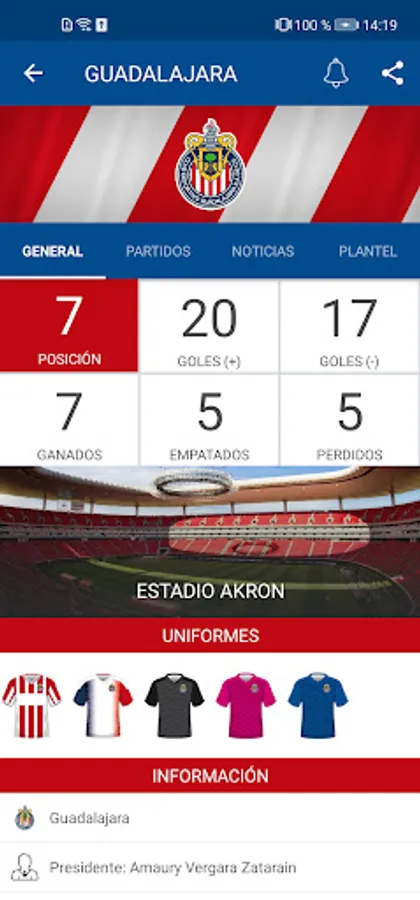 > Club details- 'Tap' on any shield to obtain details of that Club: its stadium, statistics, uniforms, and data. Swipe or use the buttons to see their news, their matches and their players.