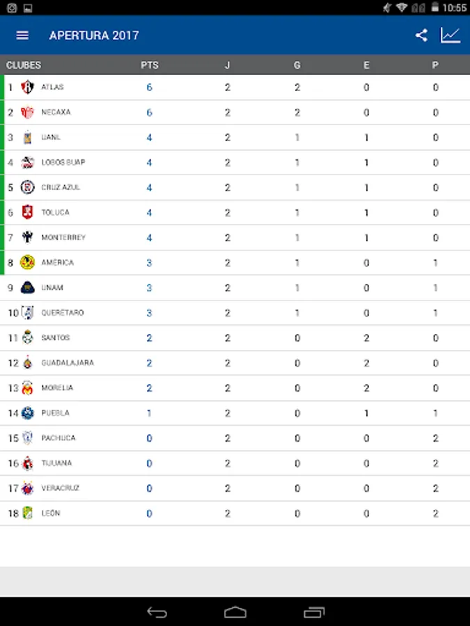 > Tables of Positions, Top Scorers and Relegation Ratio- Always updated from the AppMX!