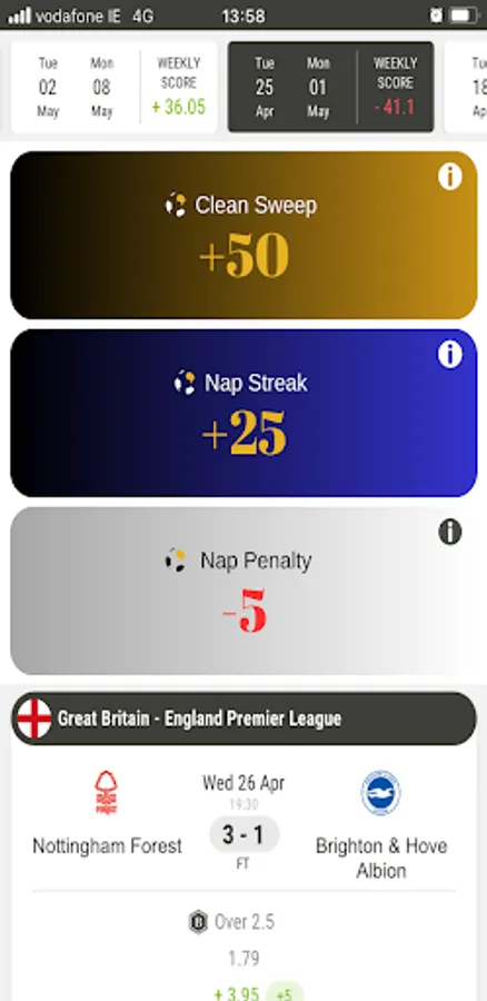 Nap competitions - based on your top predictions each week