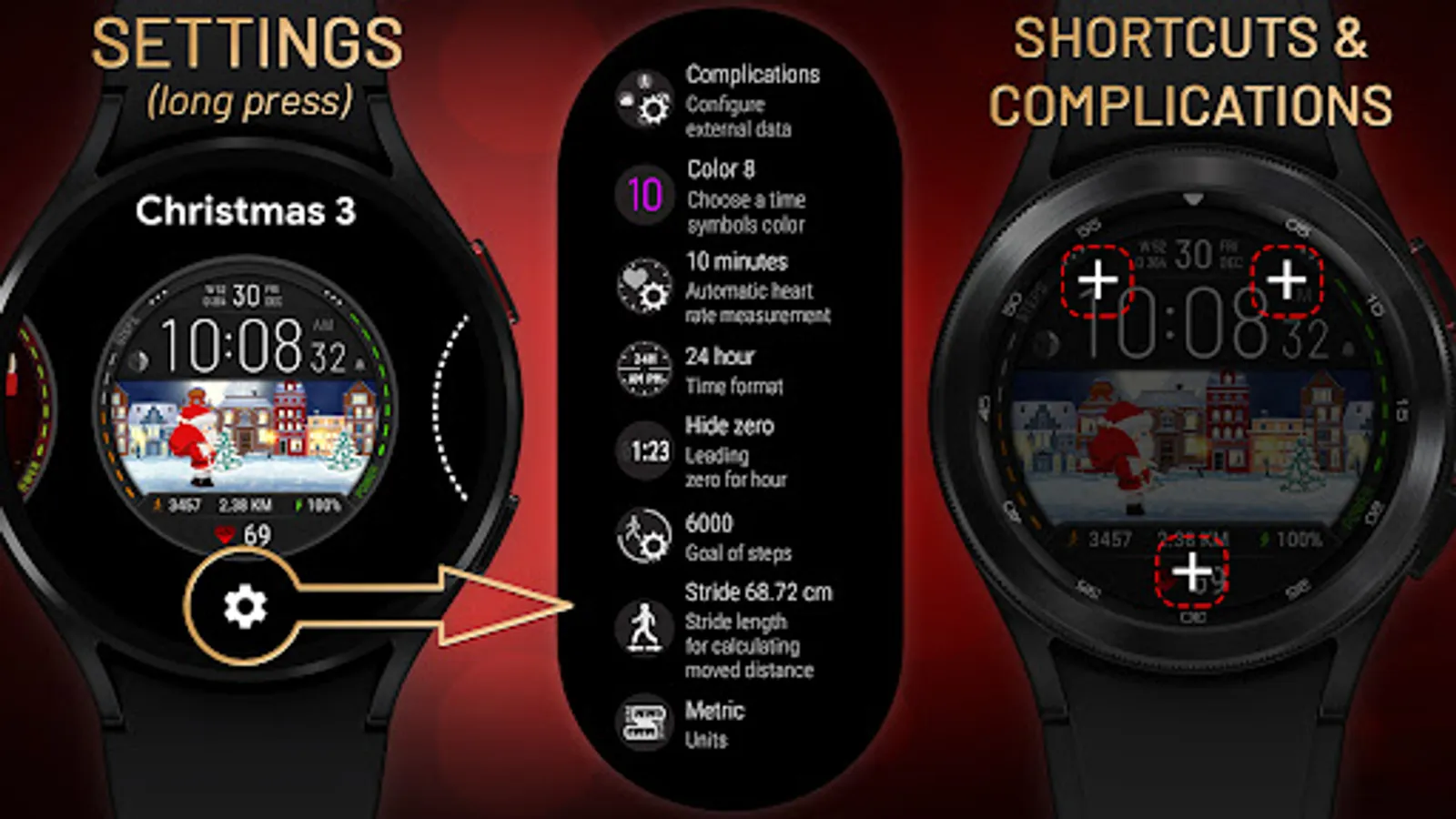 • After installing the watch face, you need to install application shortcuts and complications widgets as you wish.