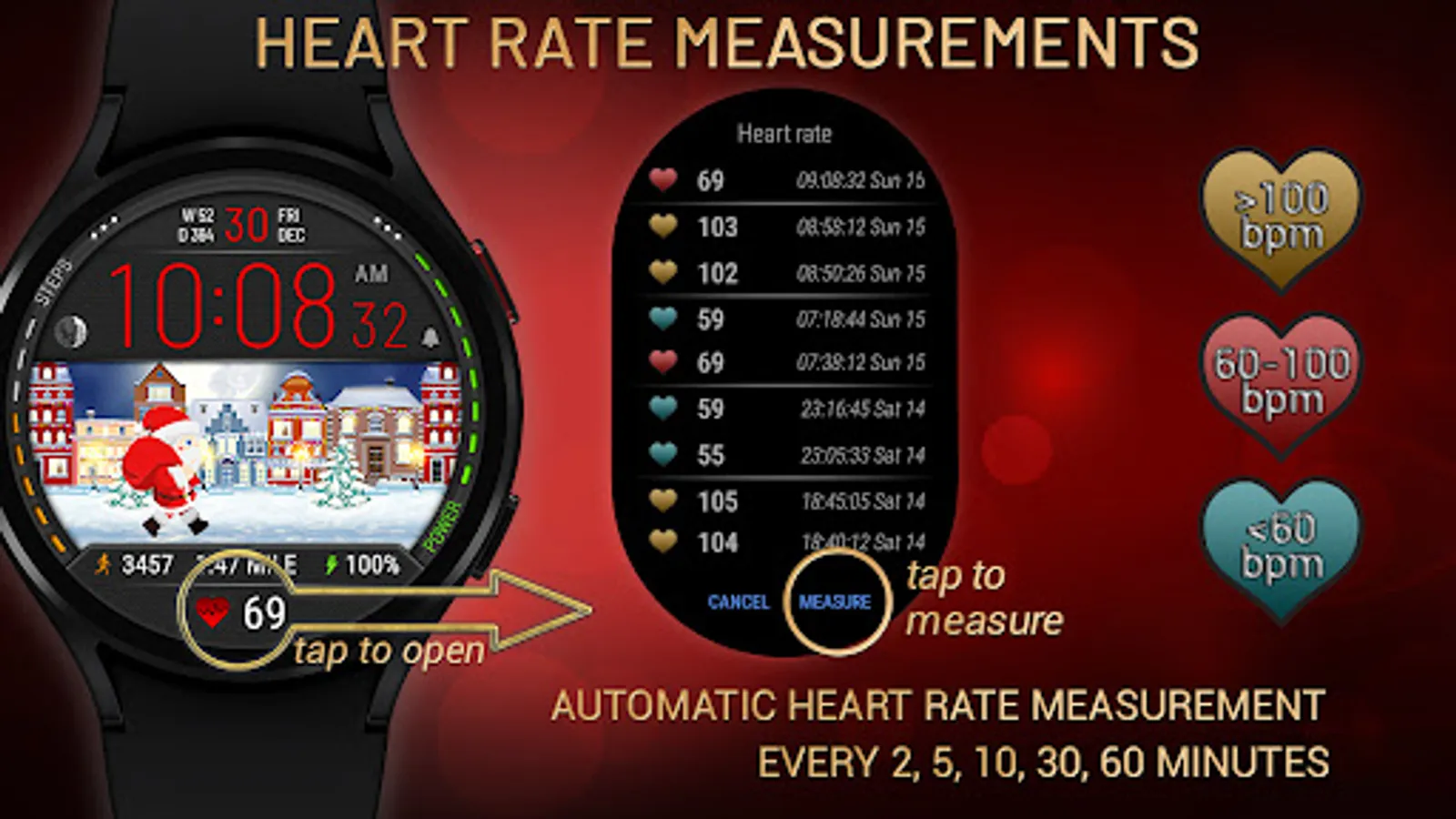 • This watch face independently measures your heart rate. This watch face does not receive data from stock Wear OS heart rate apps.