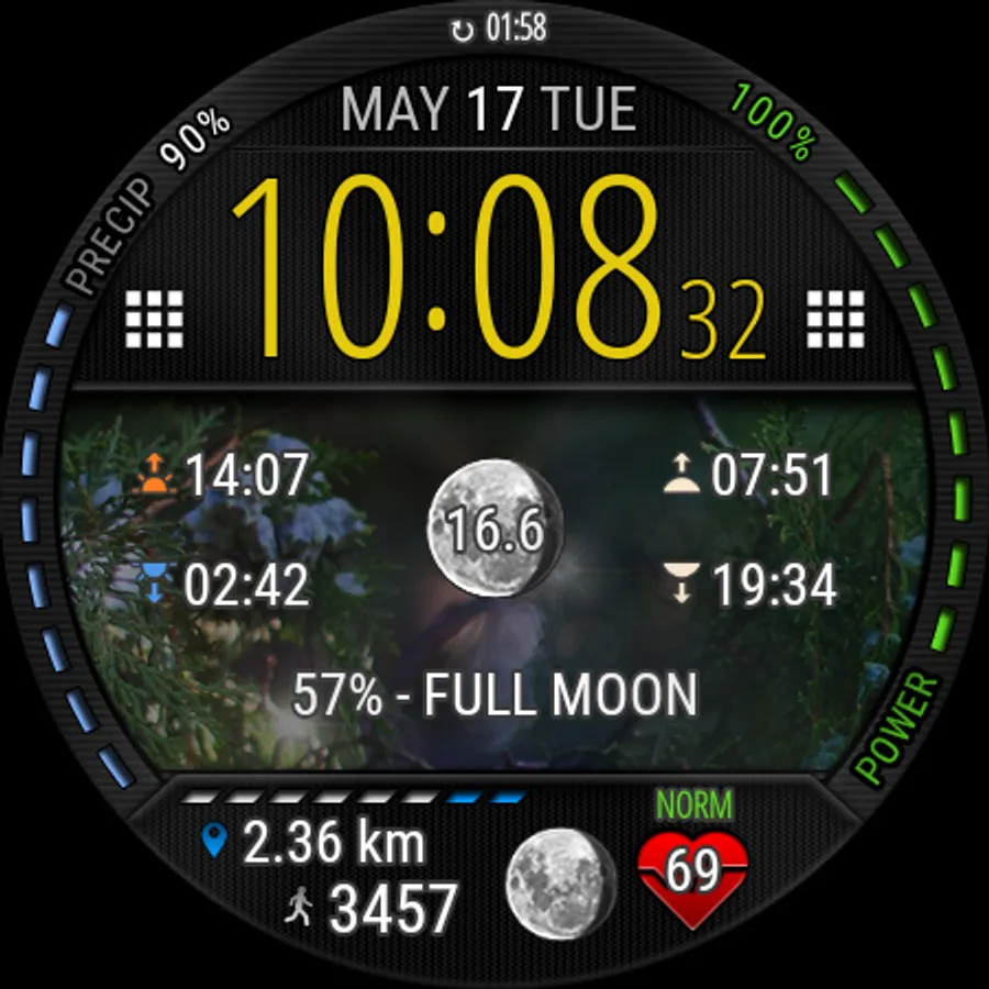 🚩 All weather information, as well as sunrise, sunset, moon age, etc. are calculated independently by the watch face.