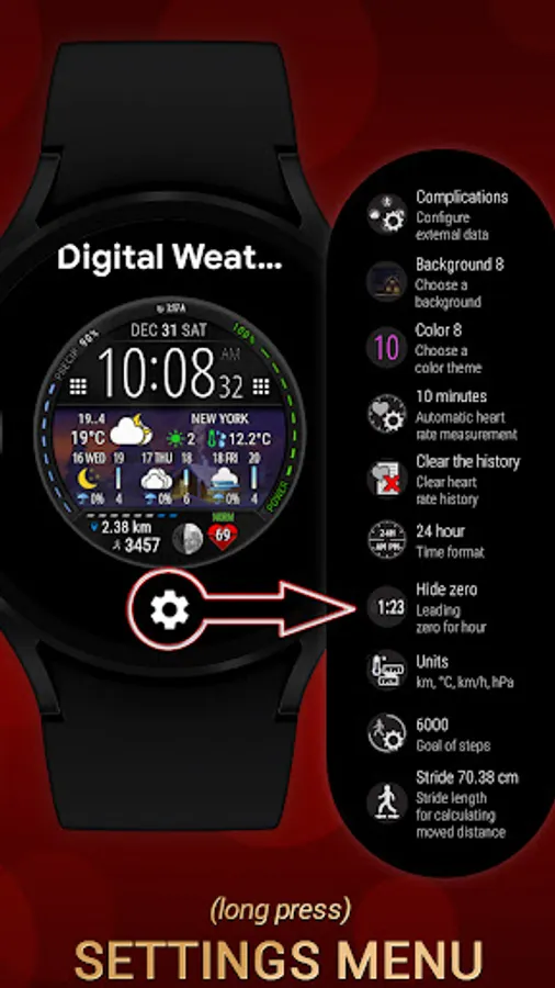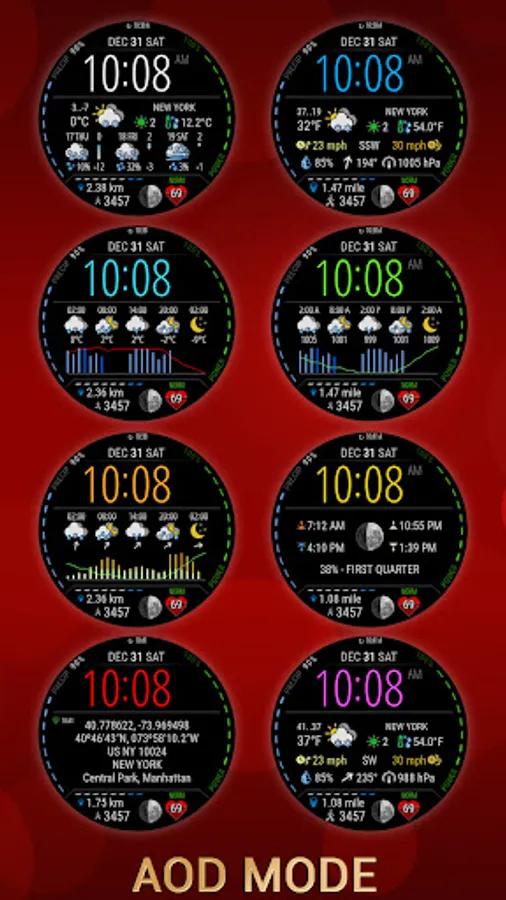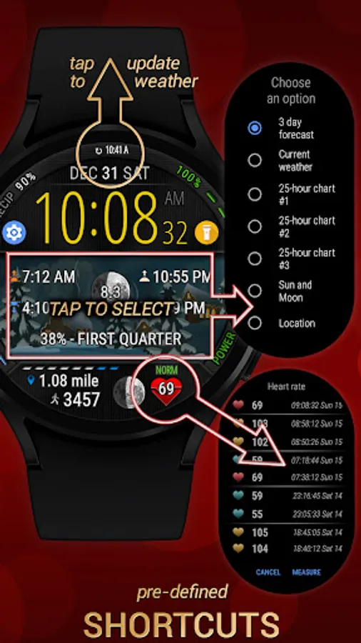 • This watch face independently measures your heart rate. This watch face does not receive data from built-in Wear OS heart rate apps.