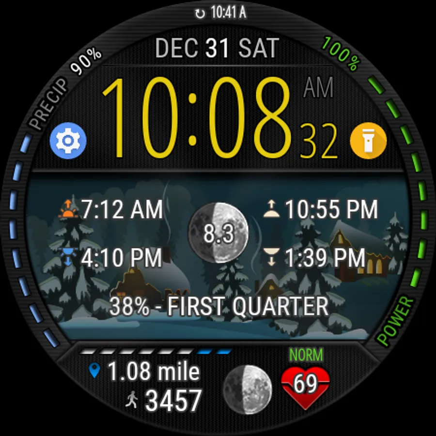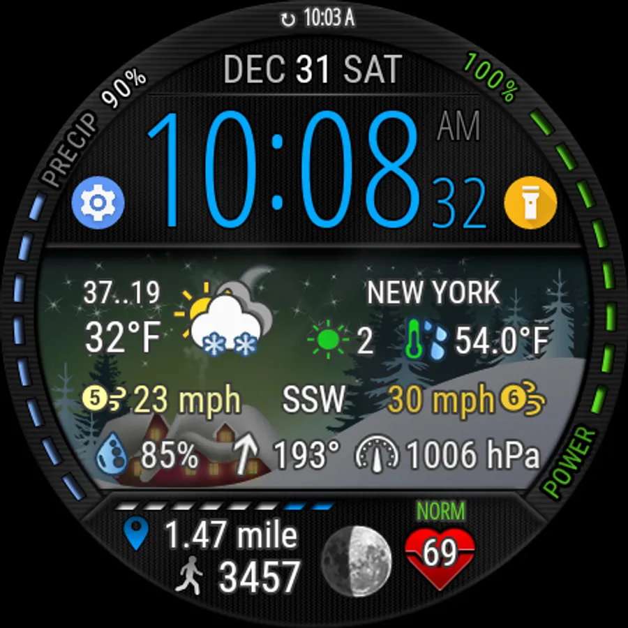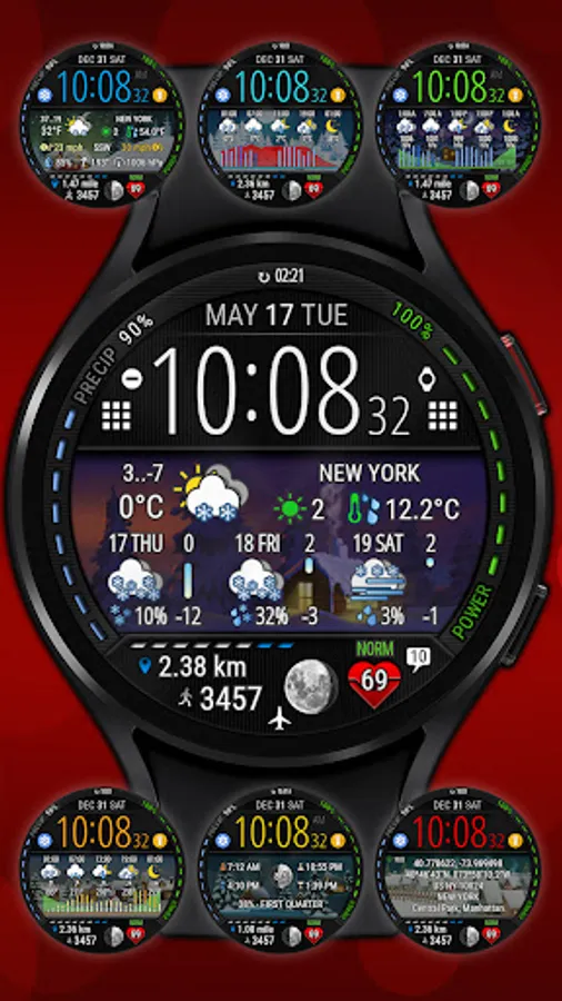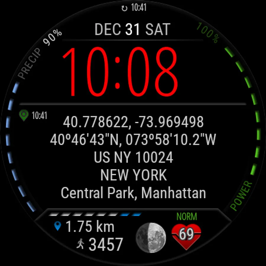 🚩 All weather information, as well as sunrise, sunset, moon age, etc. are calculated independently by the watch face.