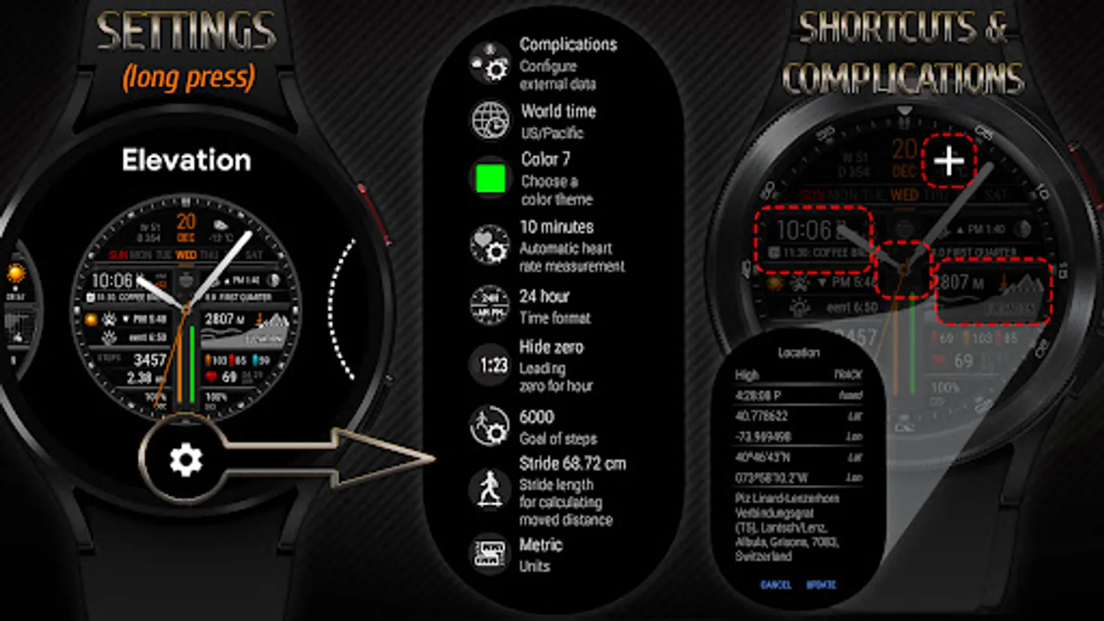 • After installing the watch face, you need to install application shortcuts and complications widgets as you wish.