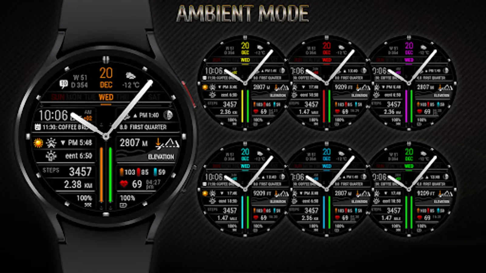 This watch face is available on devices running Wear OS 2.4 and 3+ (API 28+), primarily the Samsung Galaxy Watch 4/5 & Google Pixel Watch.