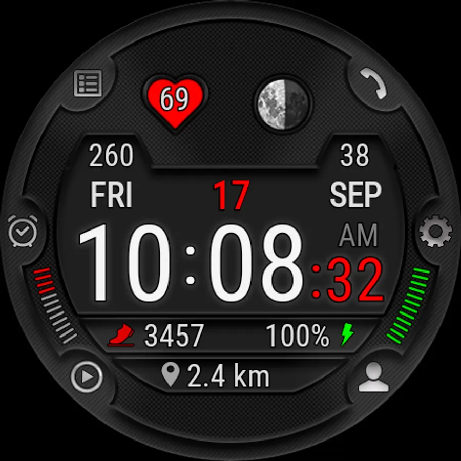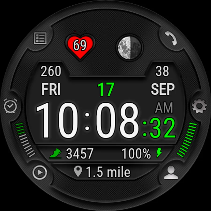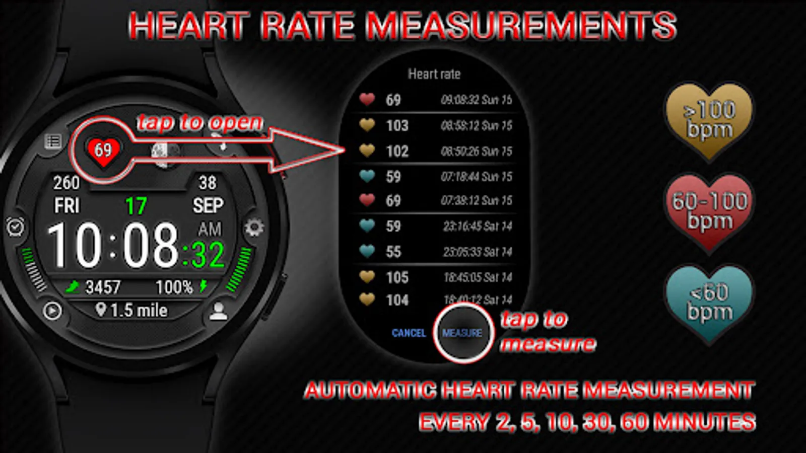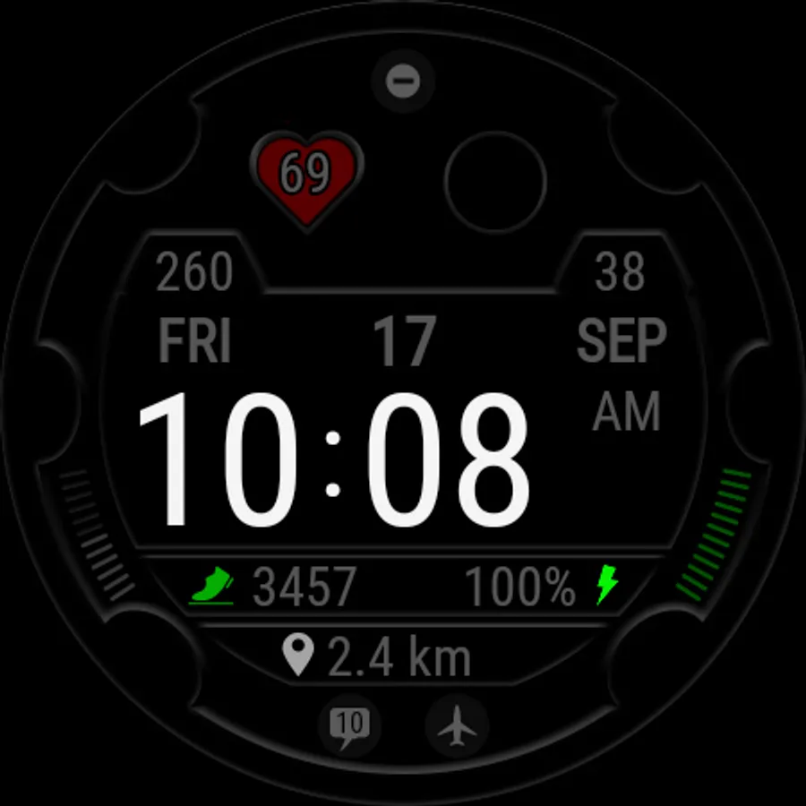 • This watch face independently measures your heart rate. This watch face does not receive data from stock Wear OS heart rate apps.