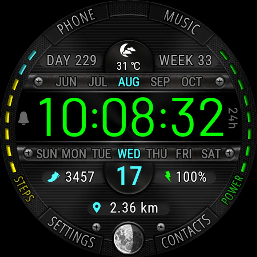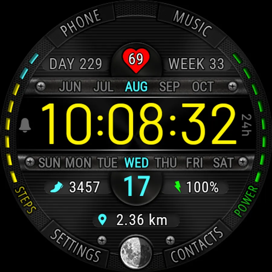 This watch face is available on devices running Wear OS 2.4 and 3+ (API 28+), primarily the Samsung Galaxy Watch 4/5 & Google Pixel Watch.