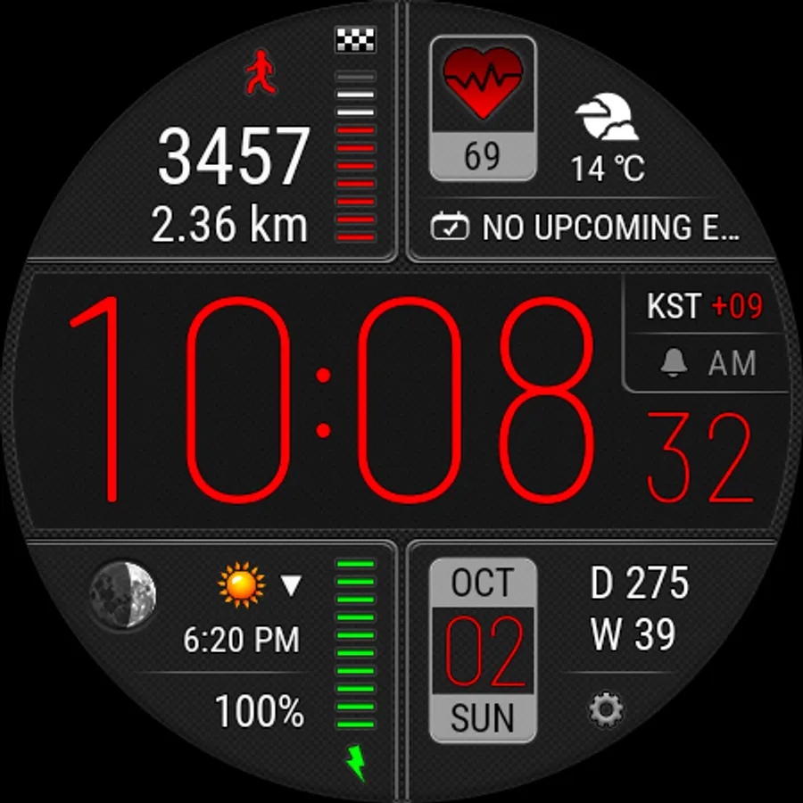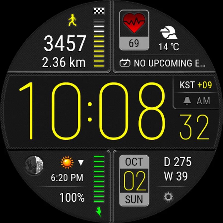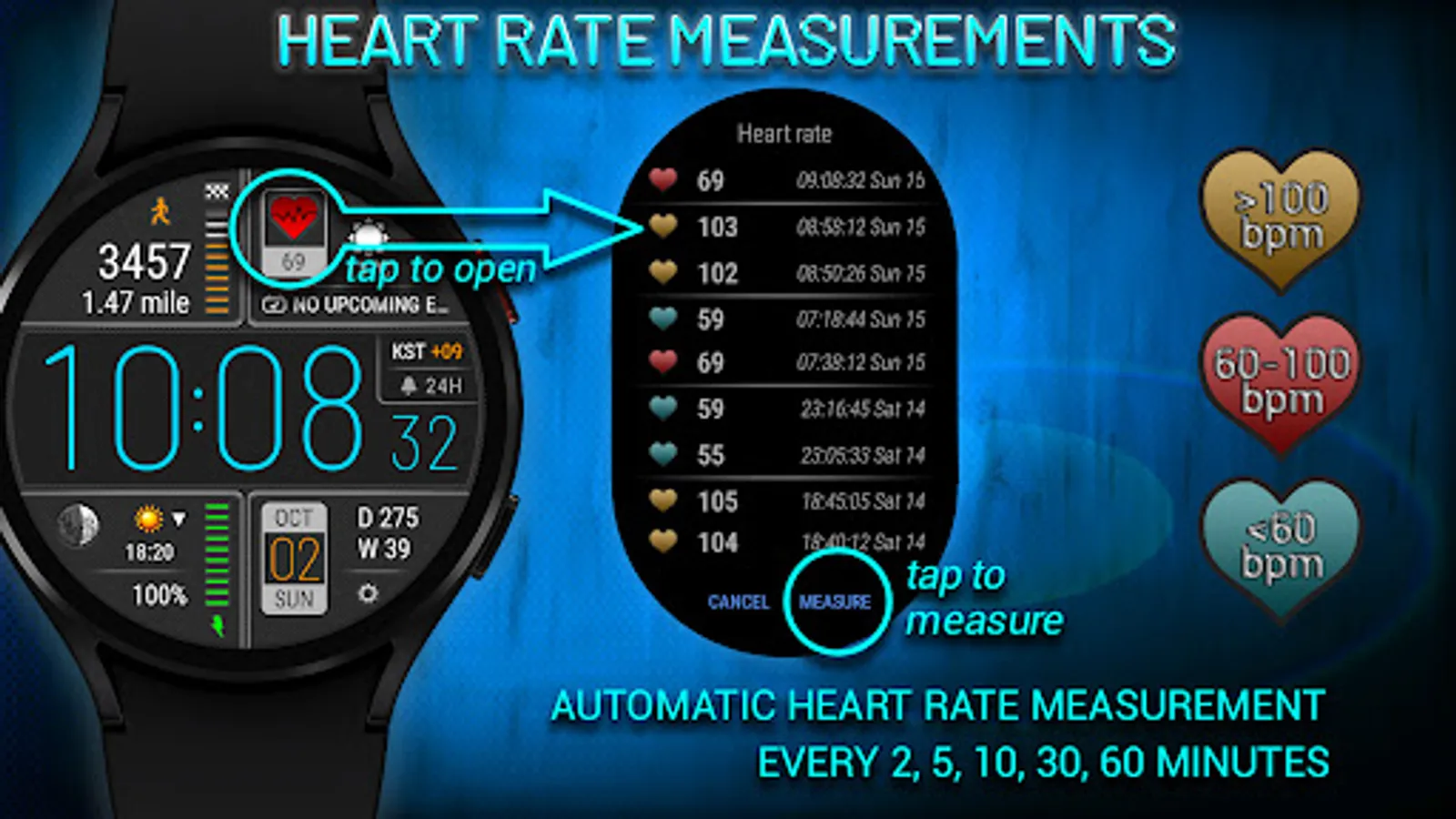 • This watch face independently measures your heart rate. This watch face does not receive data from stock Wear OS heart rate apps.