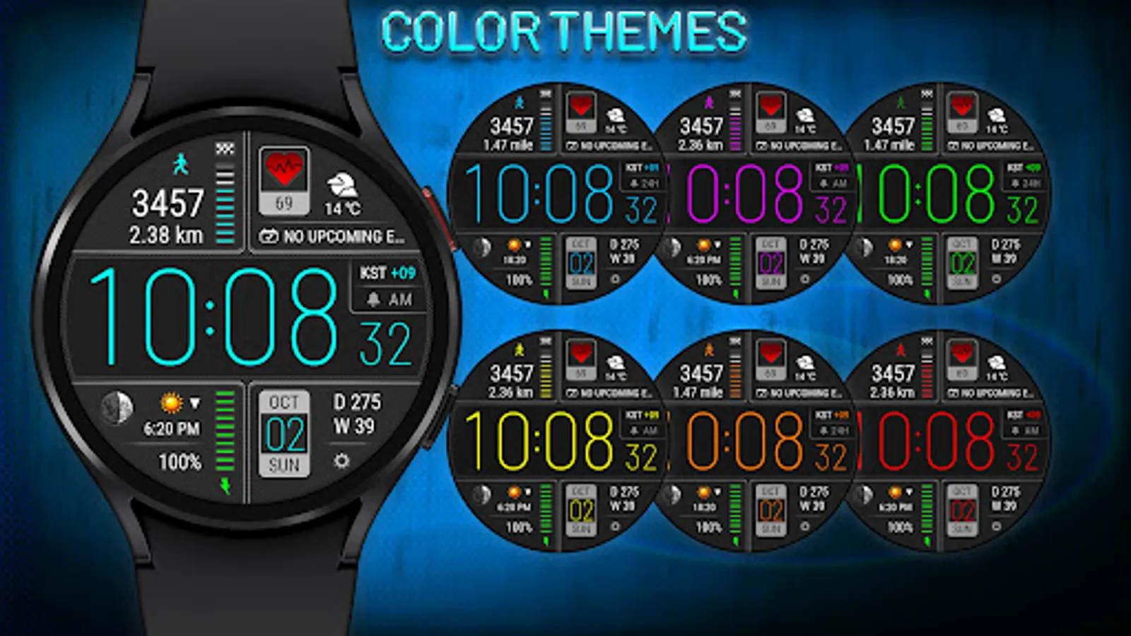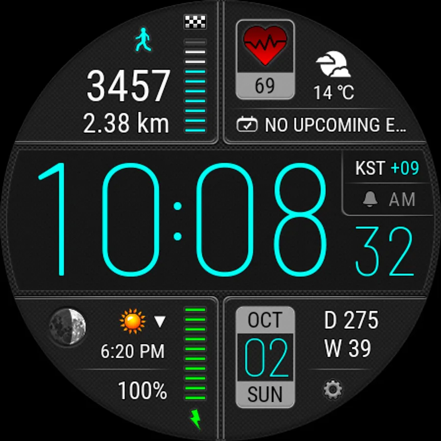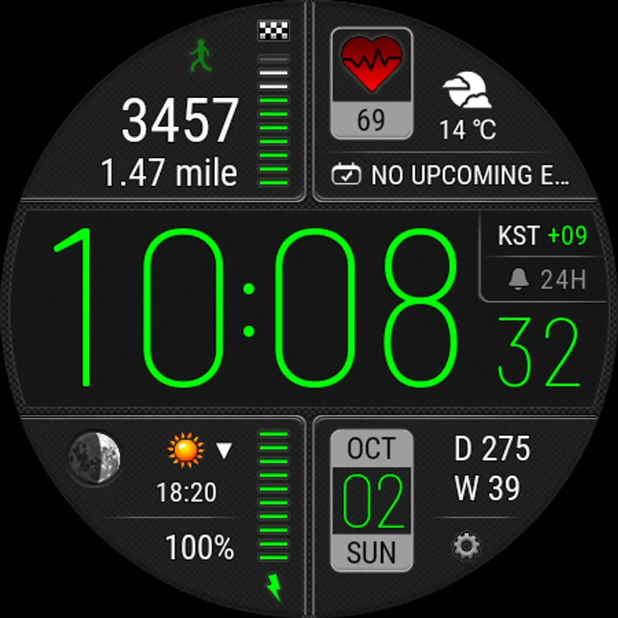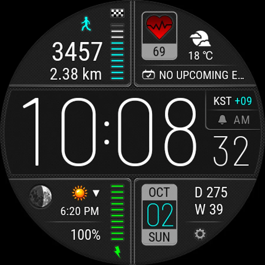 • This watch face independently measures your heart rate. This watch face does not receive data from stock Wear OS heart rate apps.
