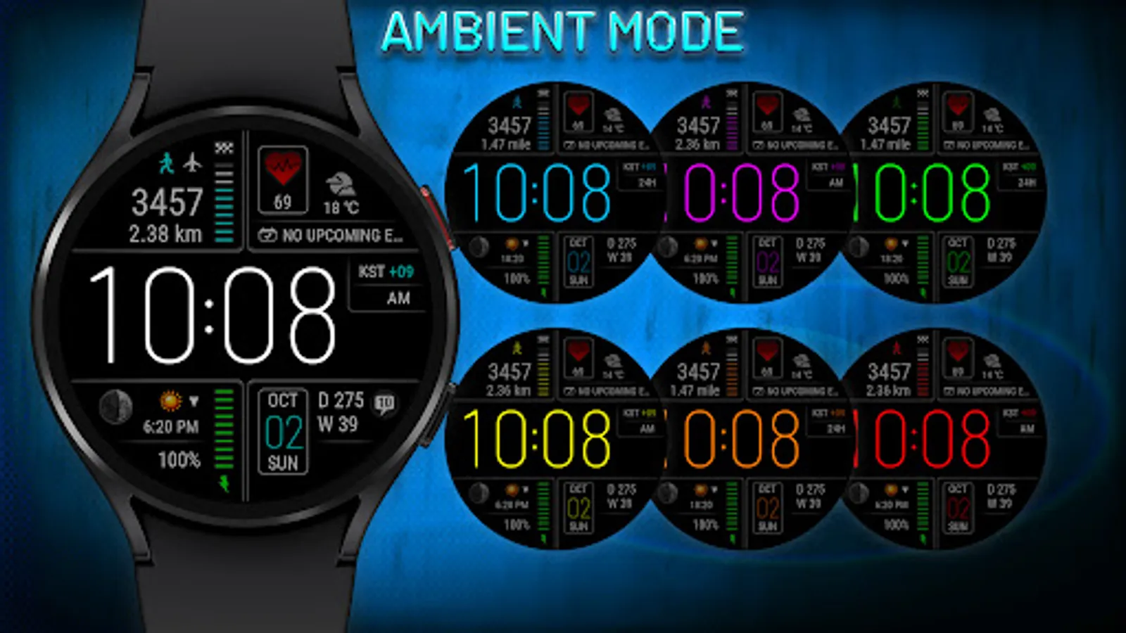 This watch face is available on devices running Wear OS 2.4 and 3+ (API 28+), primarily the Samsung Galaxy Watch 4/5 & Google Pixel Watch.