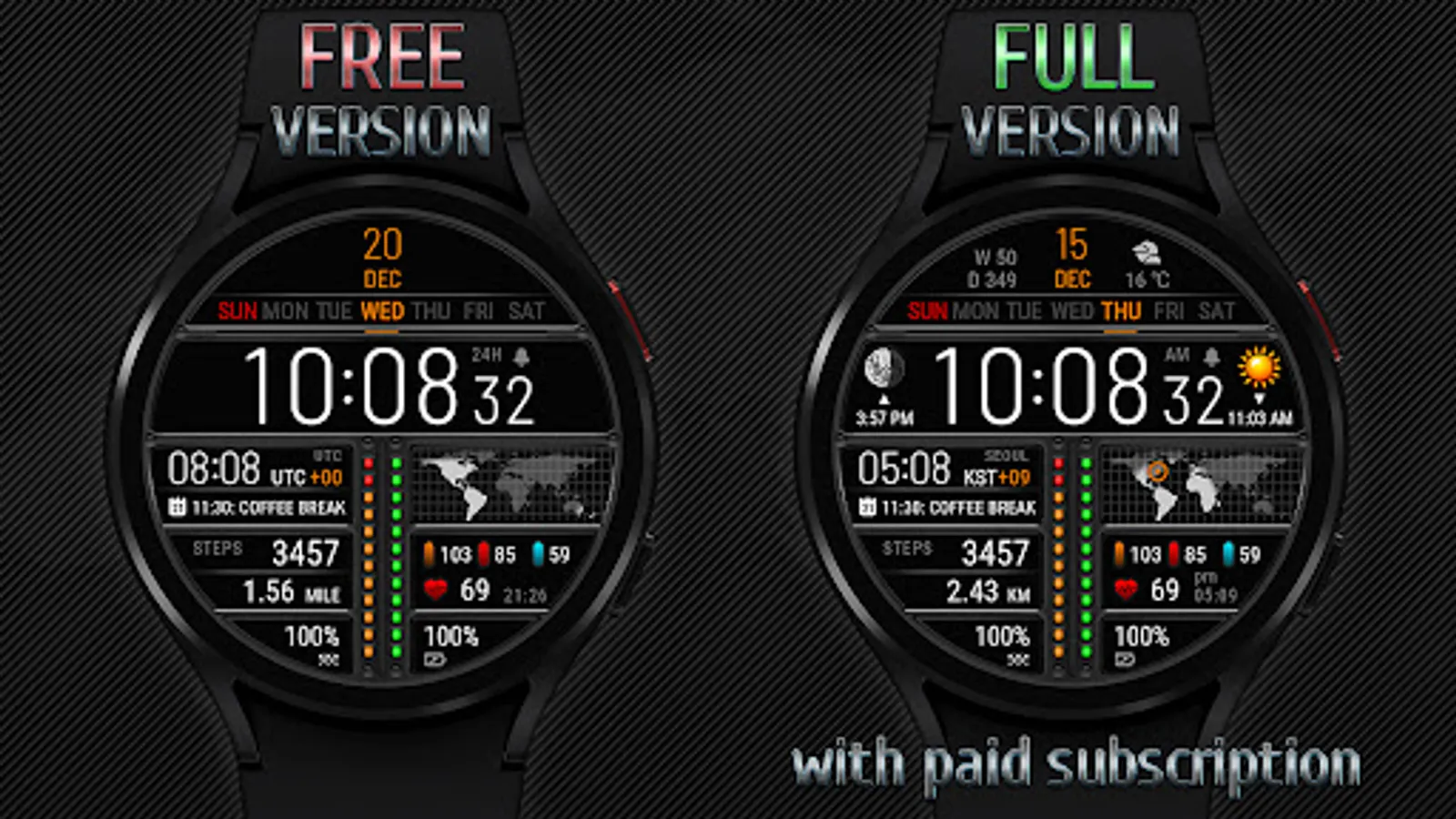 • This watch face independently measures your heart rate. This watch face does not receive data from stock Wear OS heart rate apps.