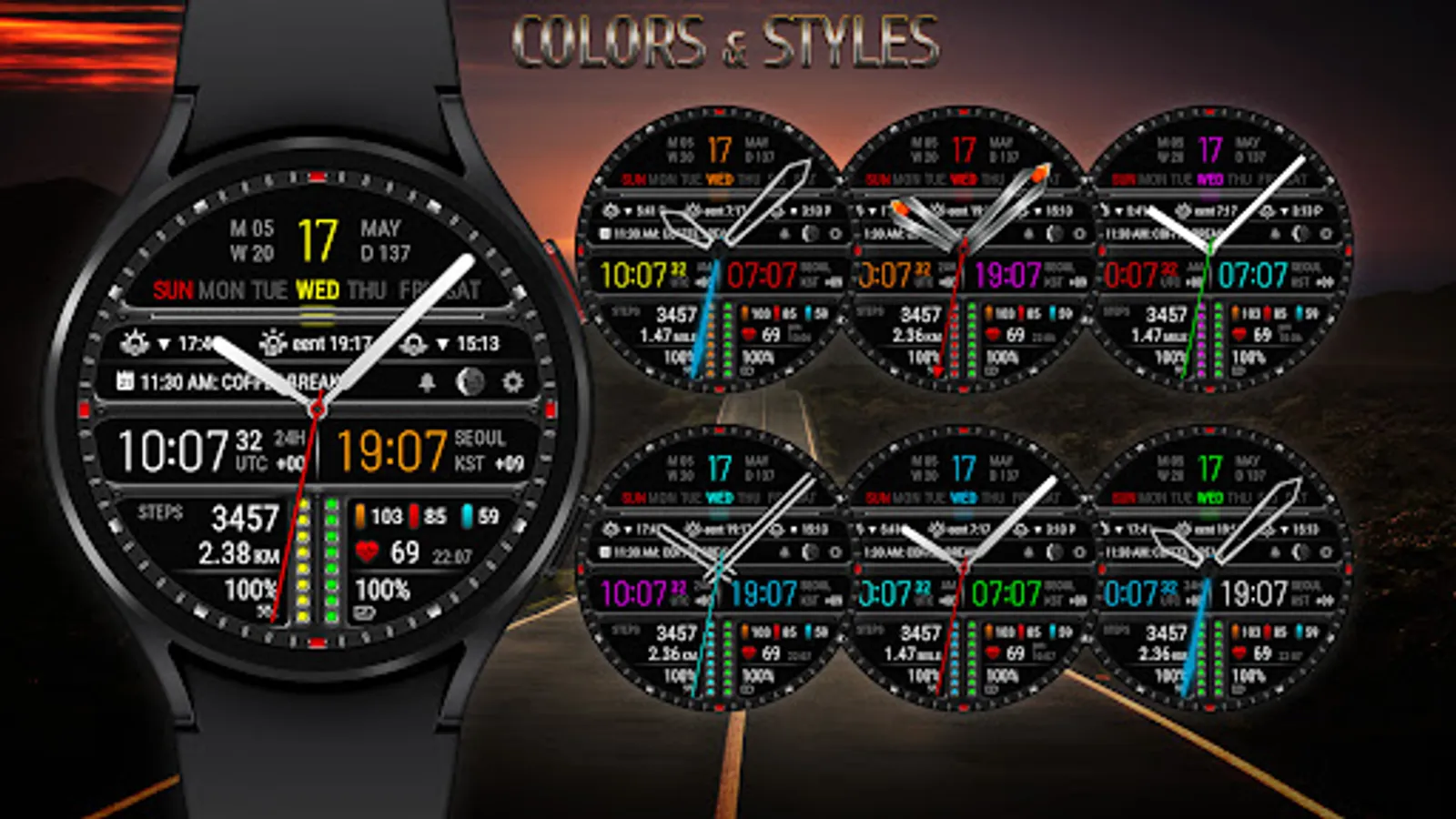 This watch face is available on devices running Wear OS 2.4 and 3+ (API 28+), primarily the Samsung Galaxy Watch 4/5 & Google Pixel Watch.