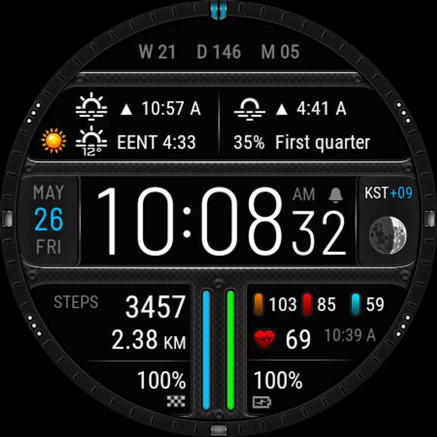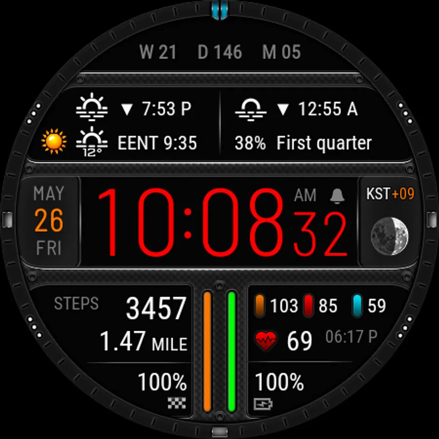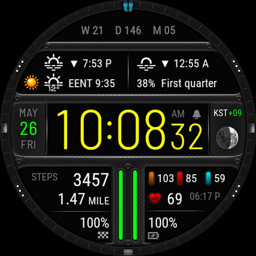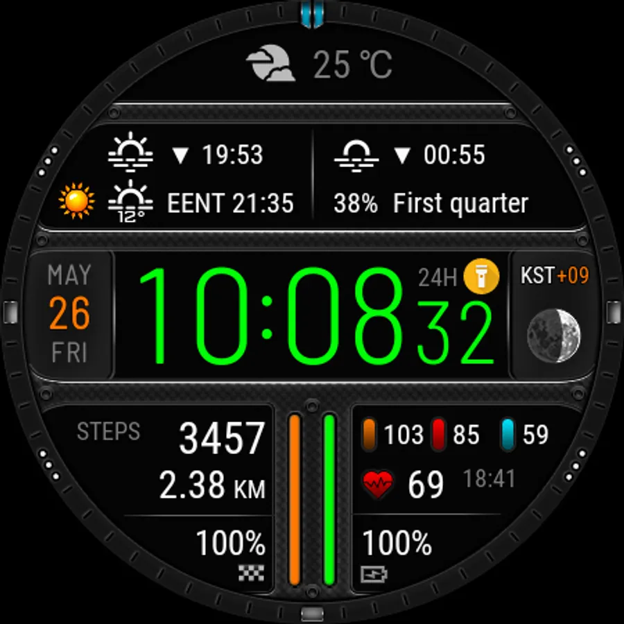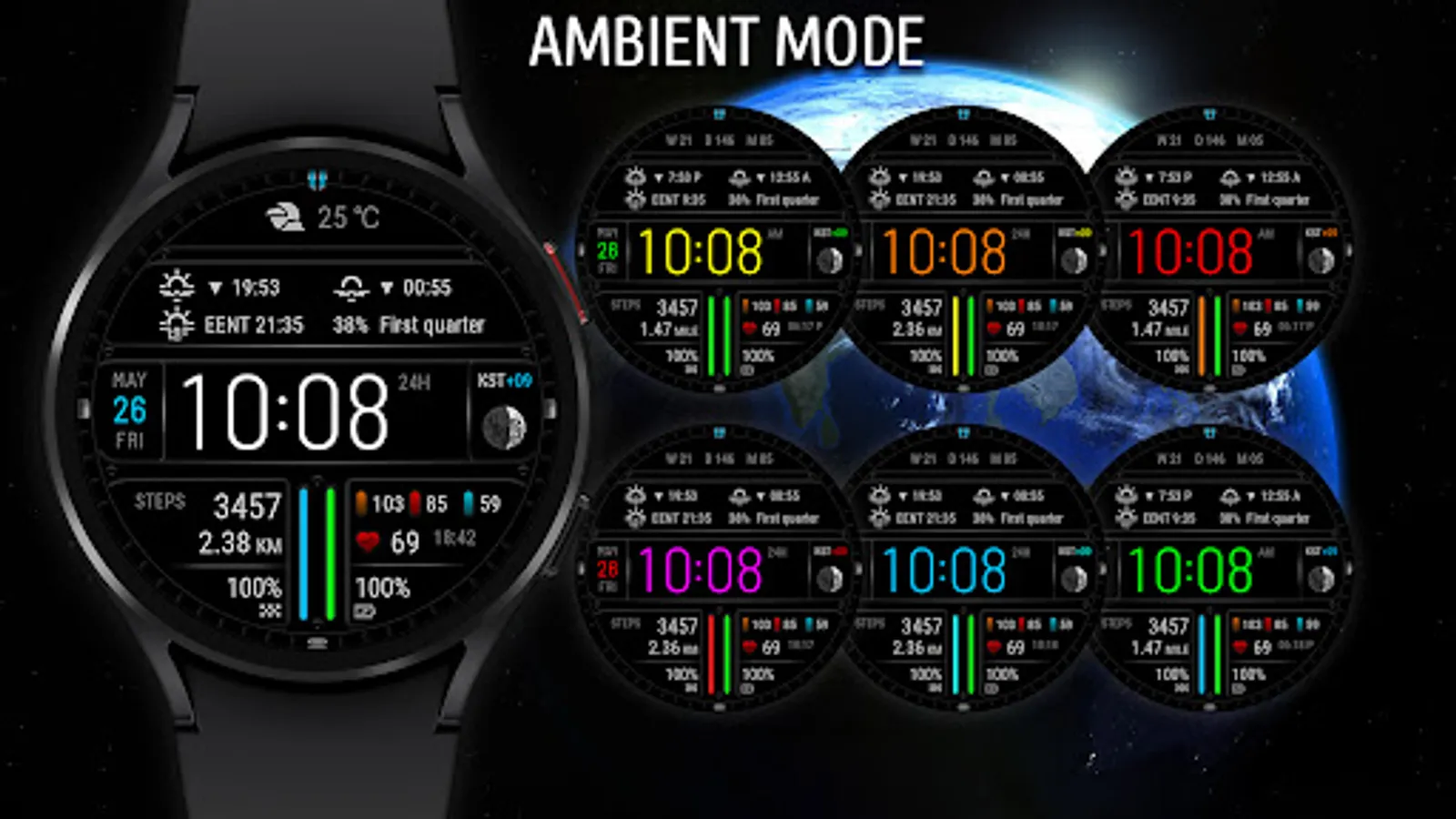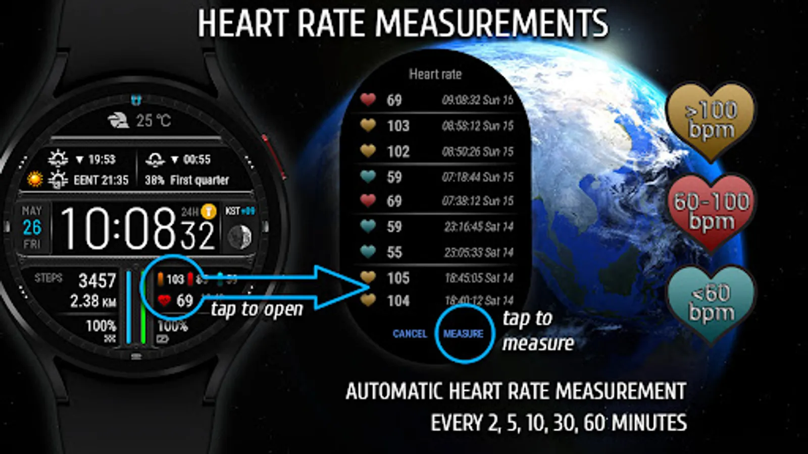 • This watch face independently measures your heart rate. This watch face does not receive data from stock Wear OS heart rate apps.