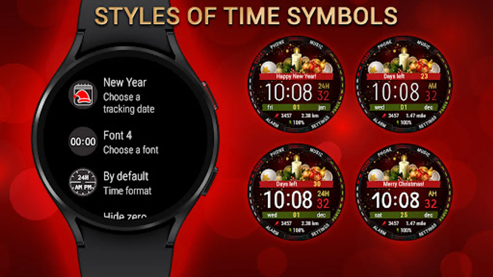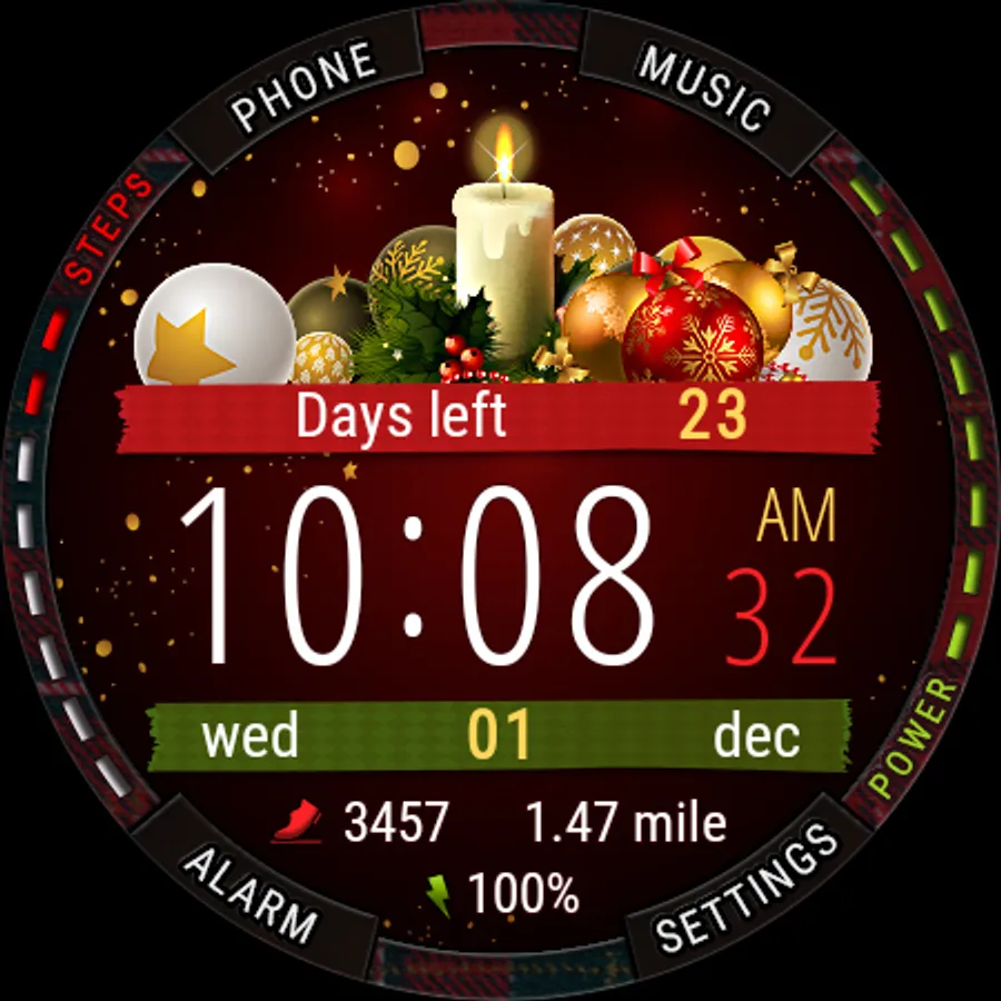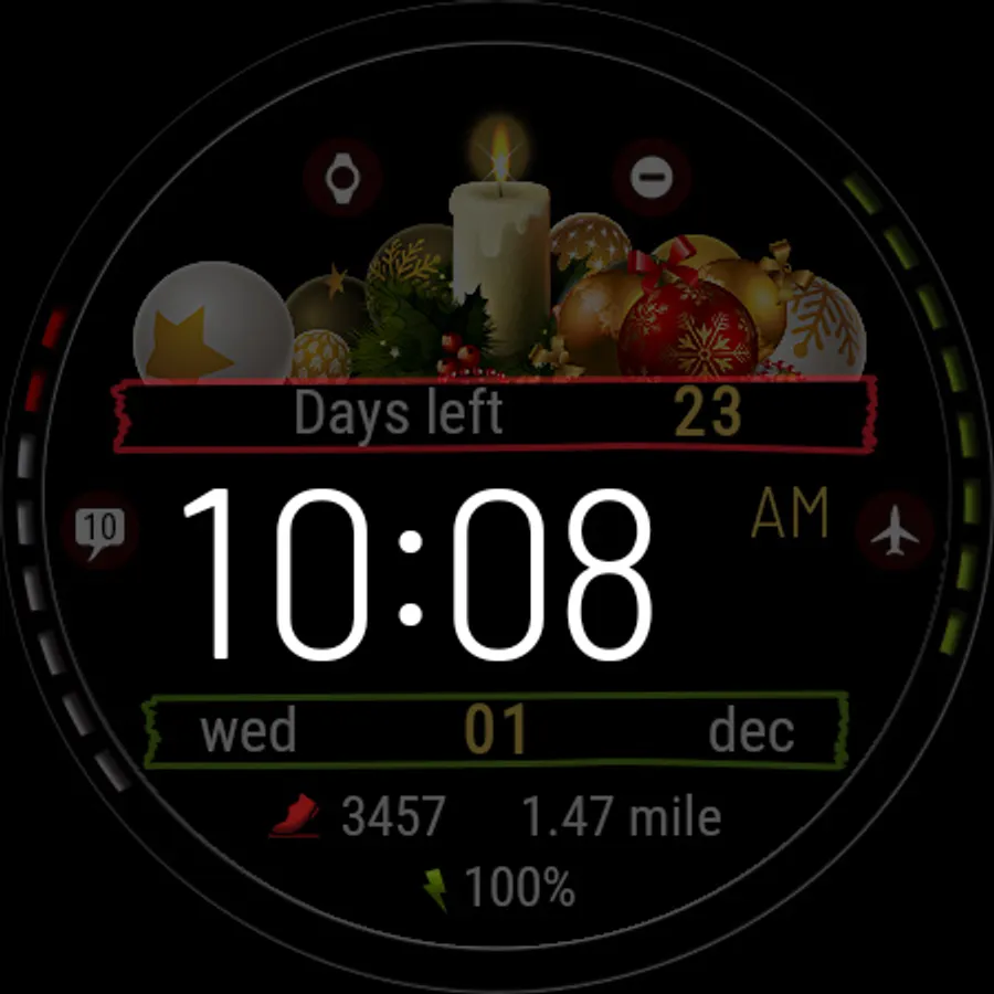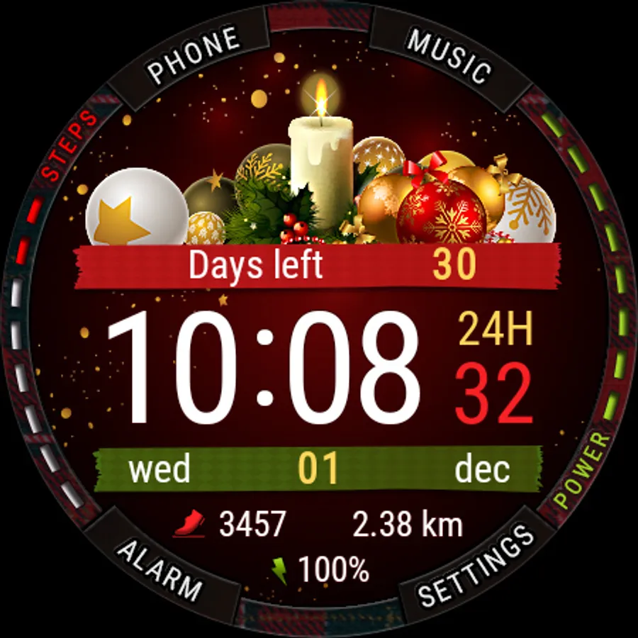 Watch face with time tracking until the New Year and Christmas holidays.