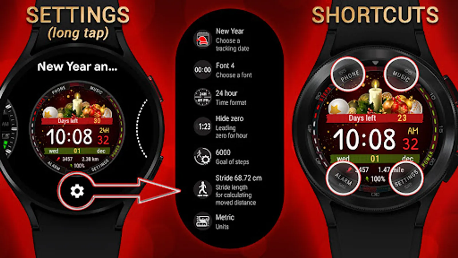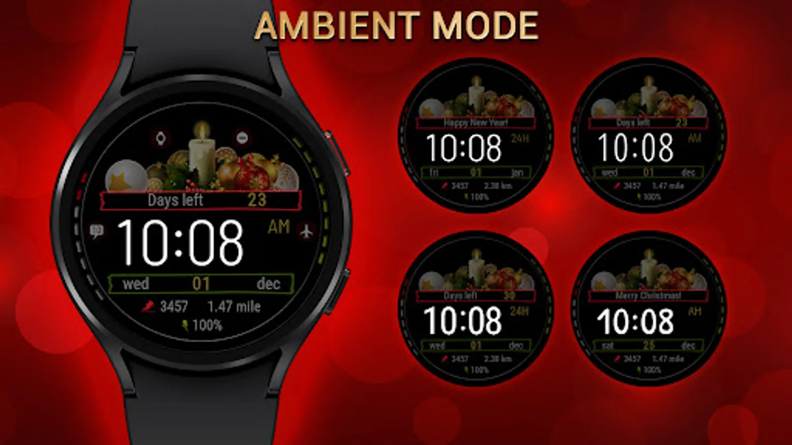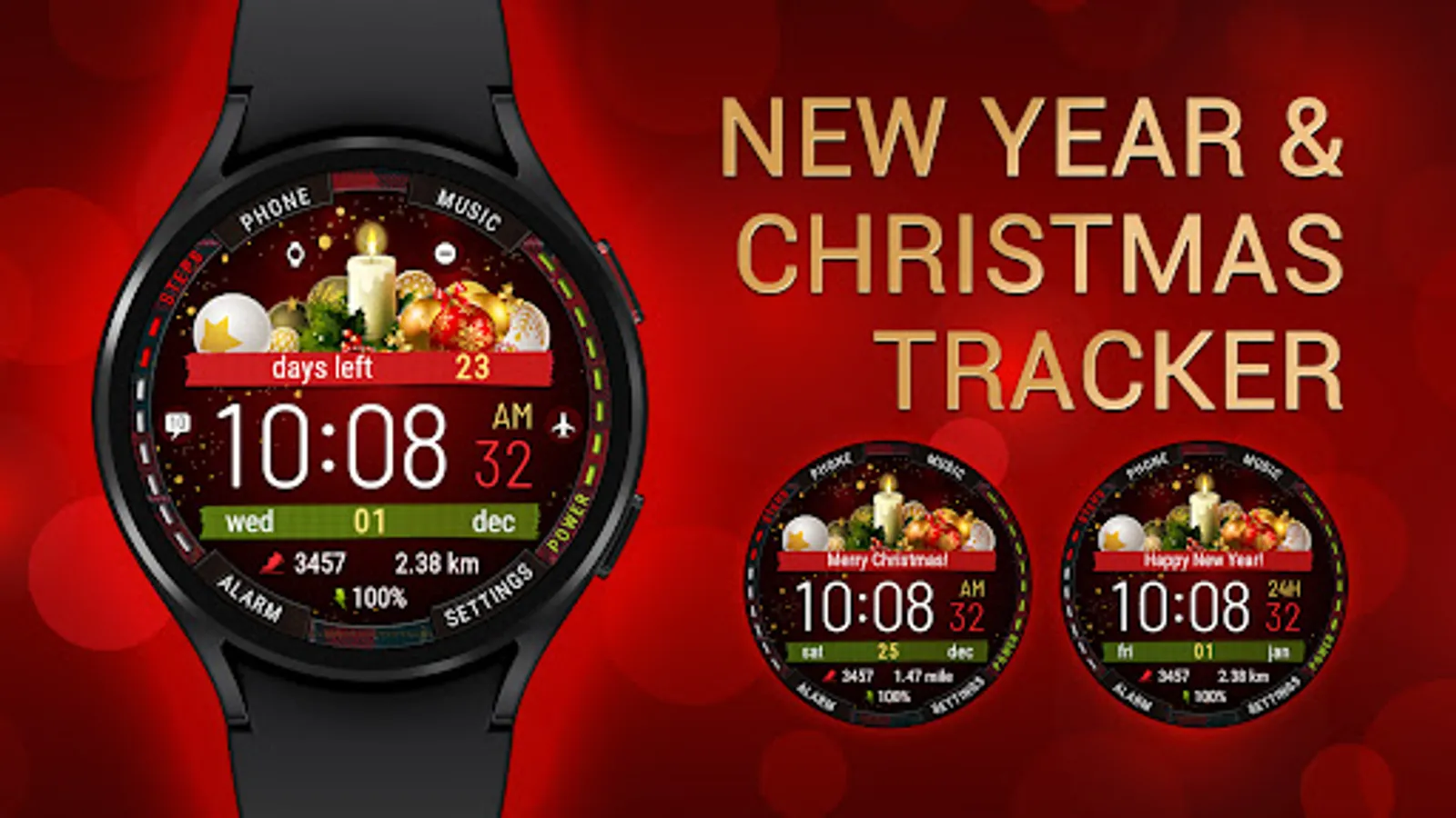Watch face with time tracking until the New Year and Christmas holidays.