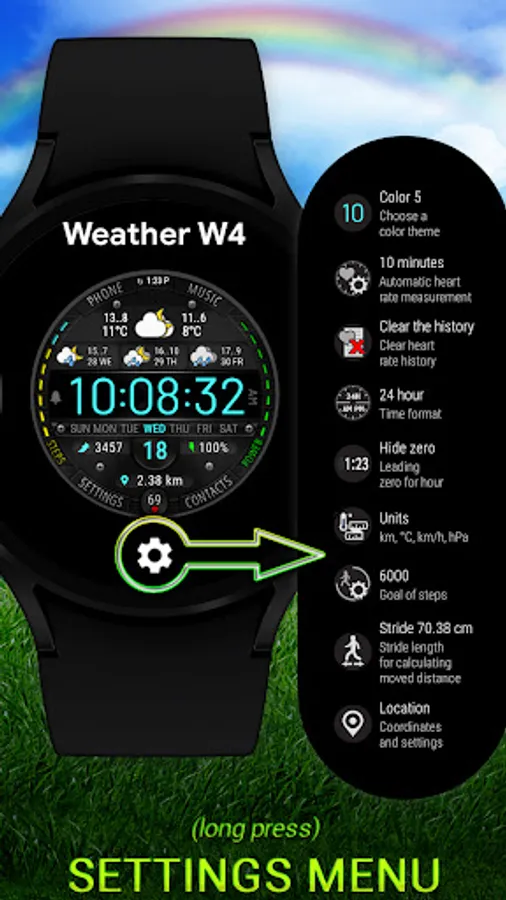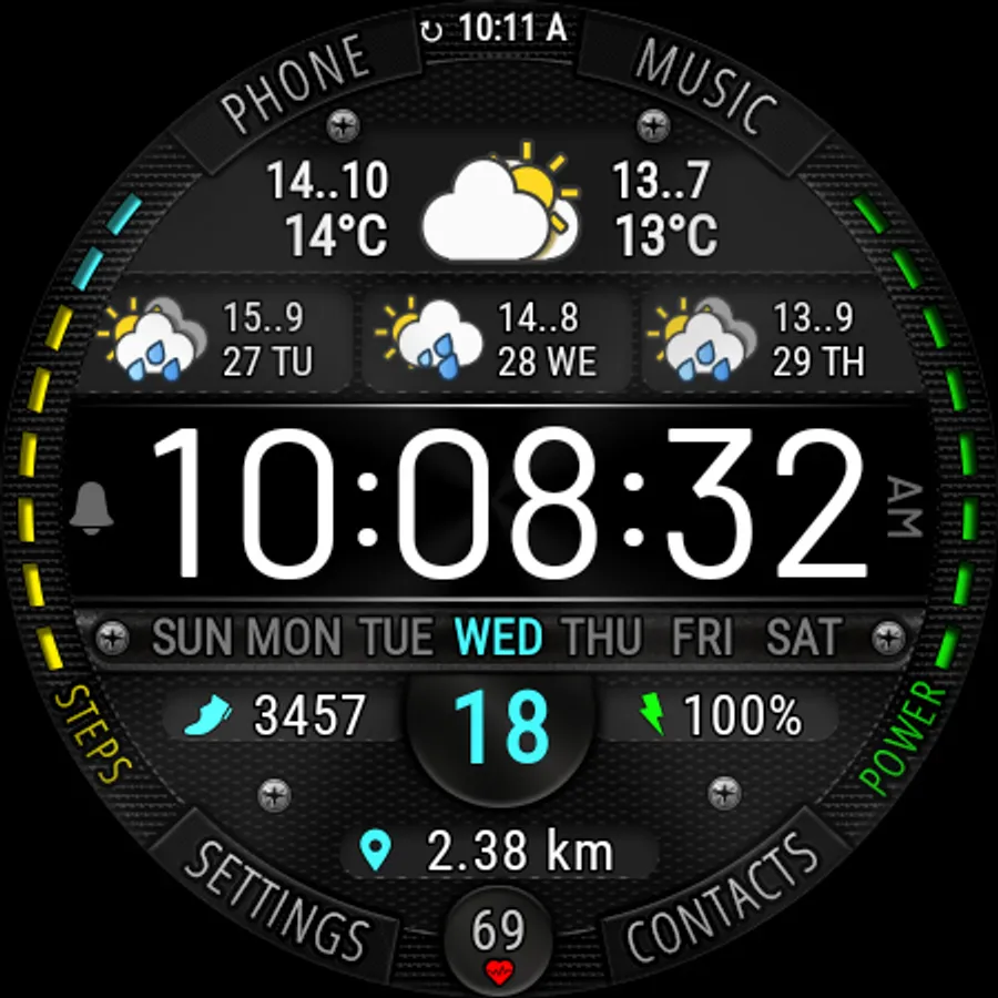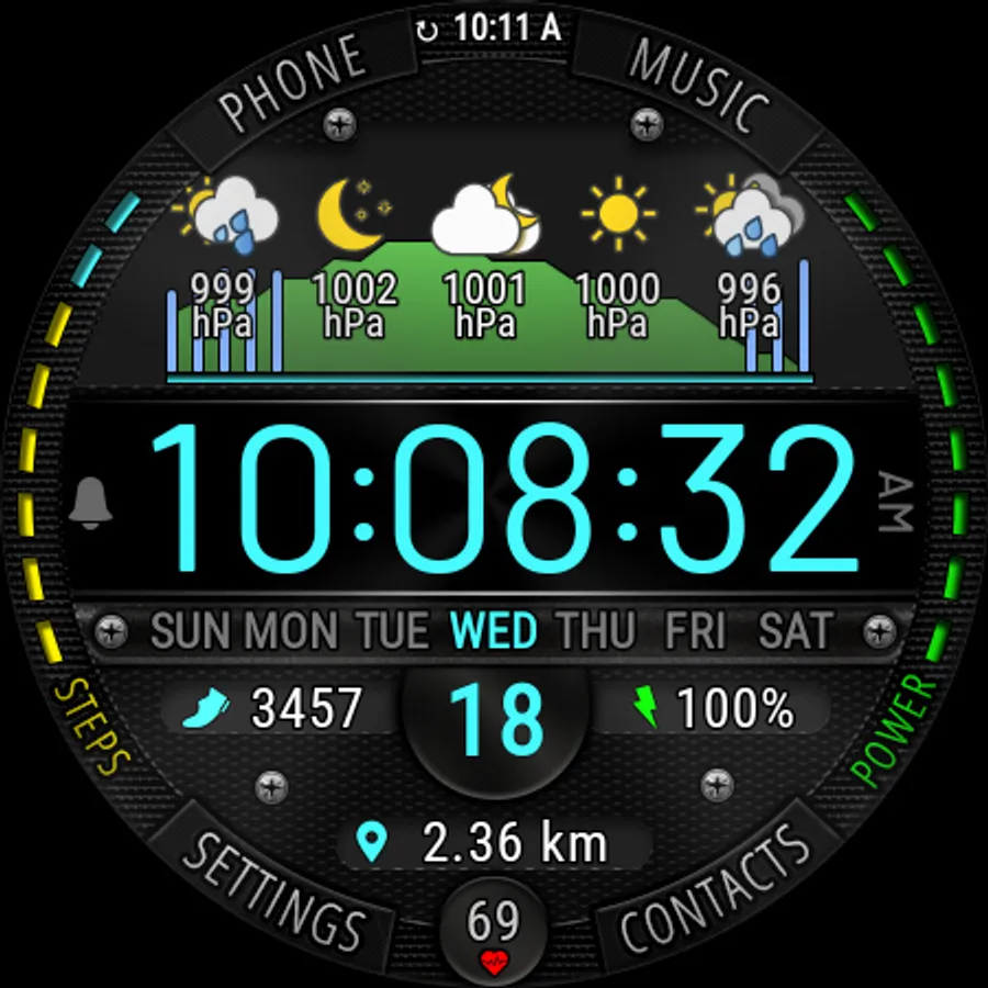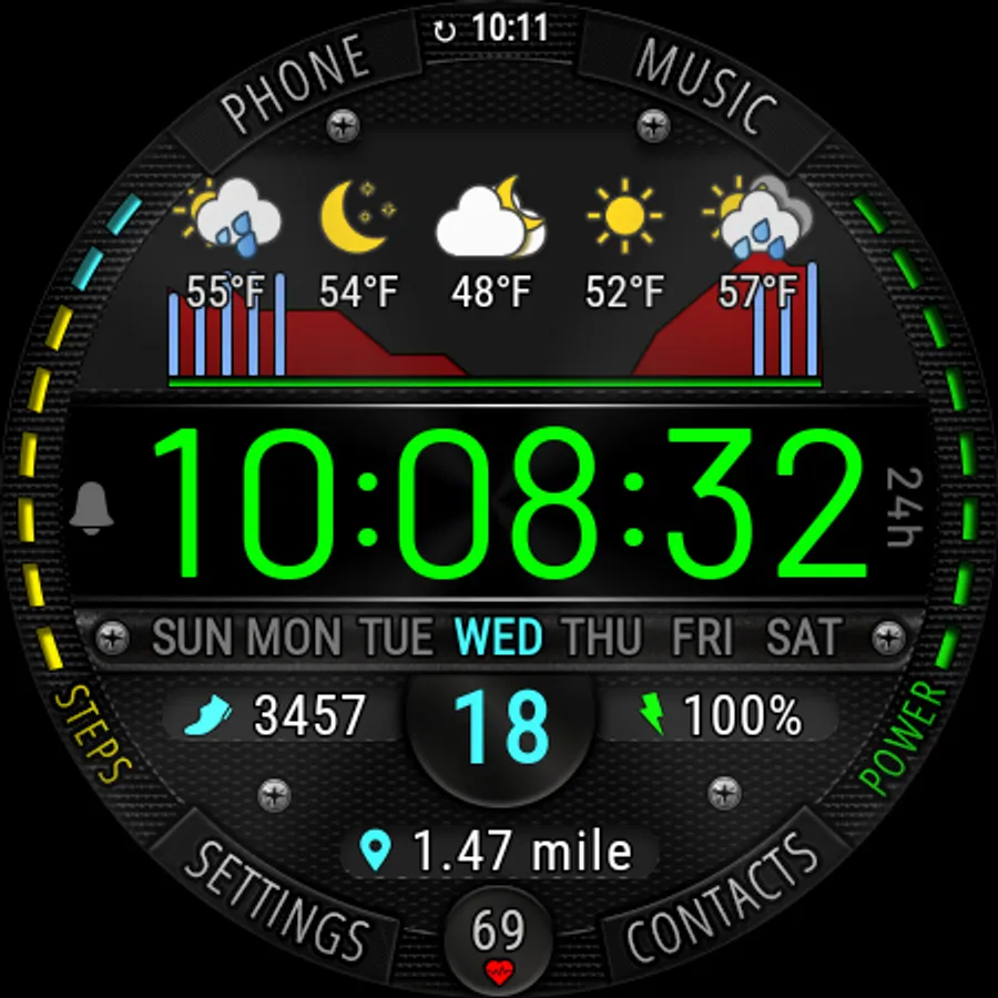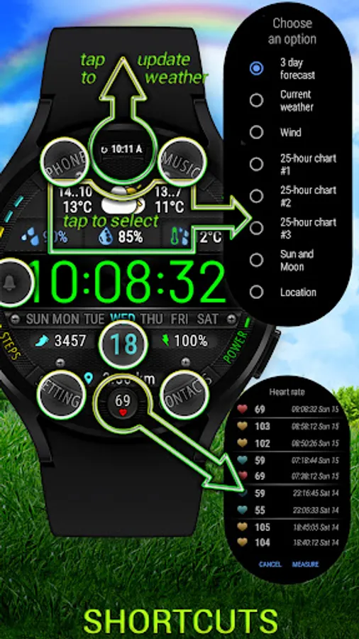 • This watch face independently measures your heart rate. This watch face does not receive data from built-in Wear OS heart rate apps.
