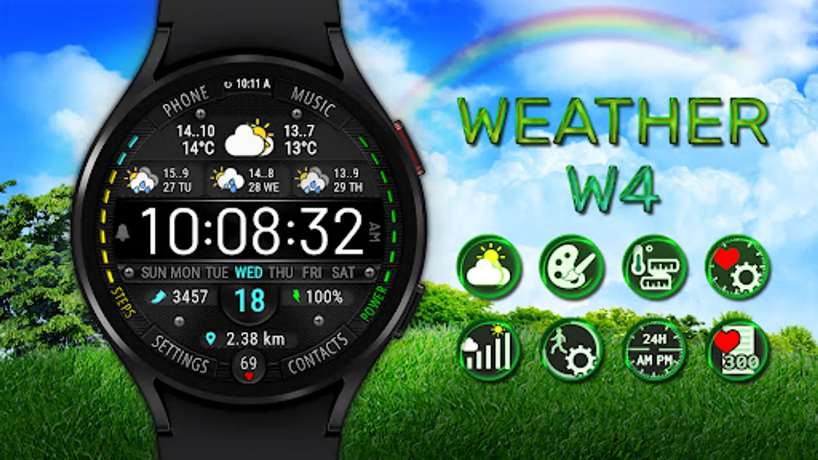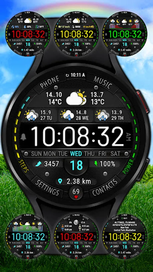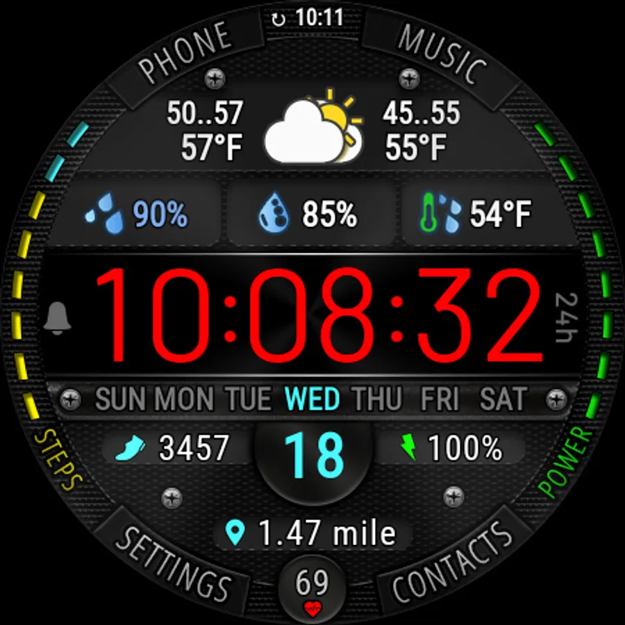 This watch face is available on devices running Wear OS 2.4 and 3+ (API 28+), primarily the Samsung Galaxy Watch 4/5.