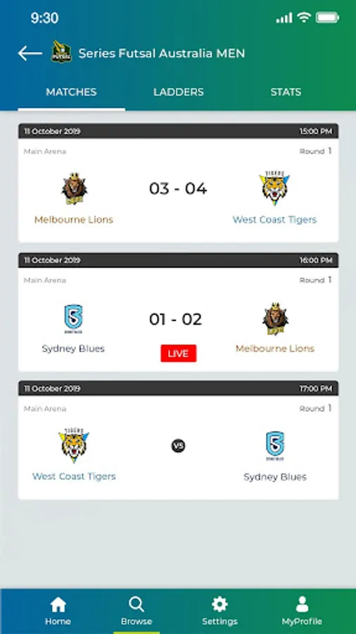 - check fixtures, results and ladders by competition